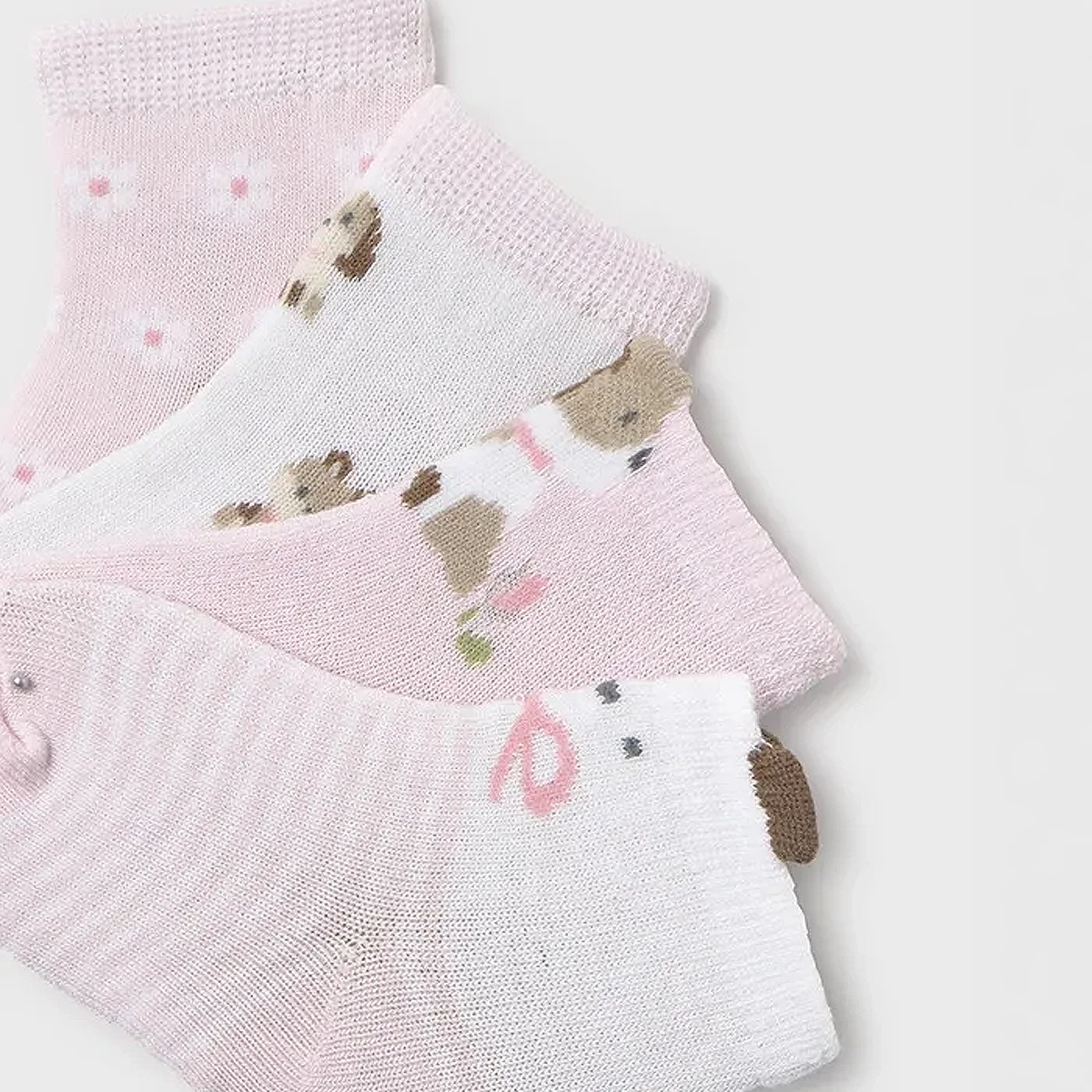 This charming 4 Piece Set of Socks is a delightful way to add a “paw-some” touch to your baby’s daily outfits. Featuring a mix of sweet pink and white tones paired with adorable puppy motifs, these socks are designed to keep tiny toes cosy while adding a playful element to any ensemble.