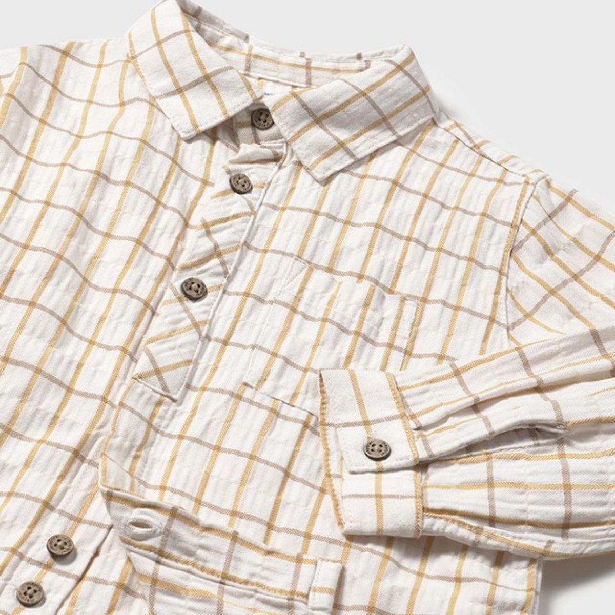 Smart, soft, and made for little explorers — this checked shirt in warm mustard tones is perfect for everyday adventures and special moments alike.