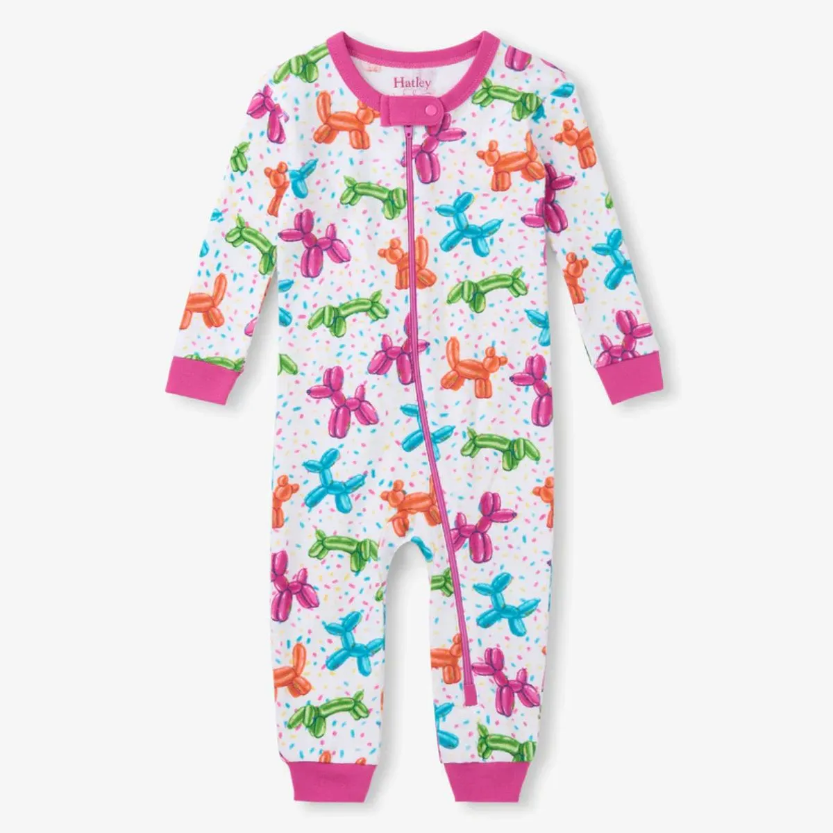 Bring a festive, party-ready feel to bedtime with this whimsical balloon animal sleepsuit! Featuring a playful all-over print of vibrant balloon pets and scattered confetti on a crisp white base, it’s designed to make every night feel like a celebration while keeping your little one perfectly comfortable.