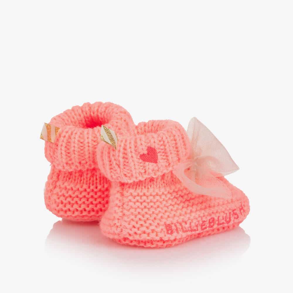 Soft, sweet, and full of charm — these Billieblush coral pink knitted booties are perfect for keeping little feet cosy and cute.