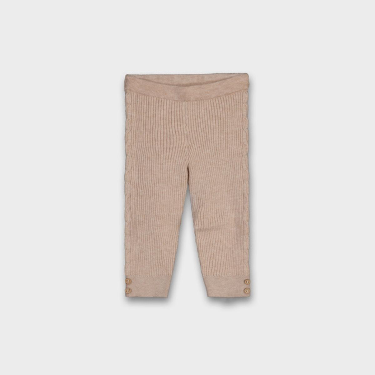A cosy everyday essential with a delicate finish. These toffee-coloured baby leggings are crafted from a soft, stretchy knit for all-day comfort and movement. The ribbed texture and side braided detailing add a charming, classic touch, while decorative buttons at the ankle elevate the look.