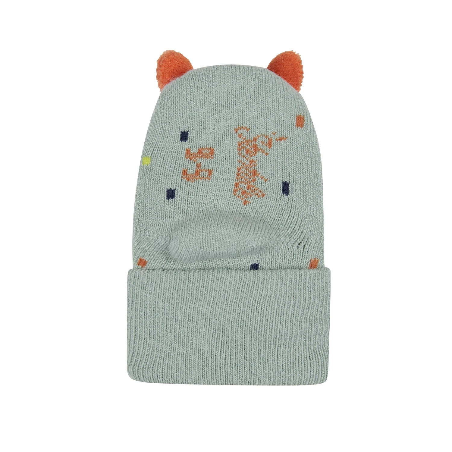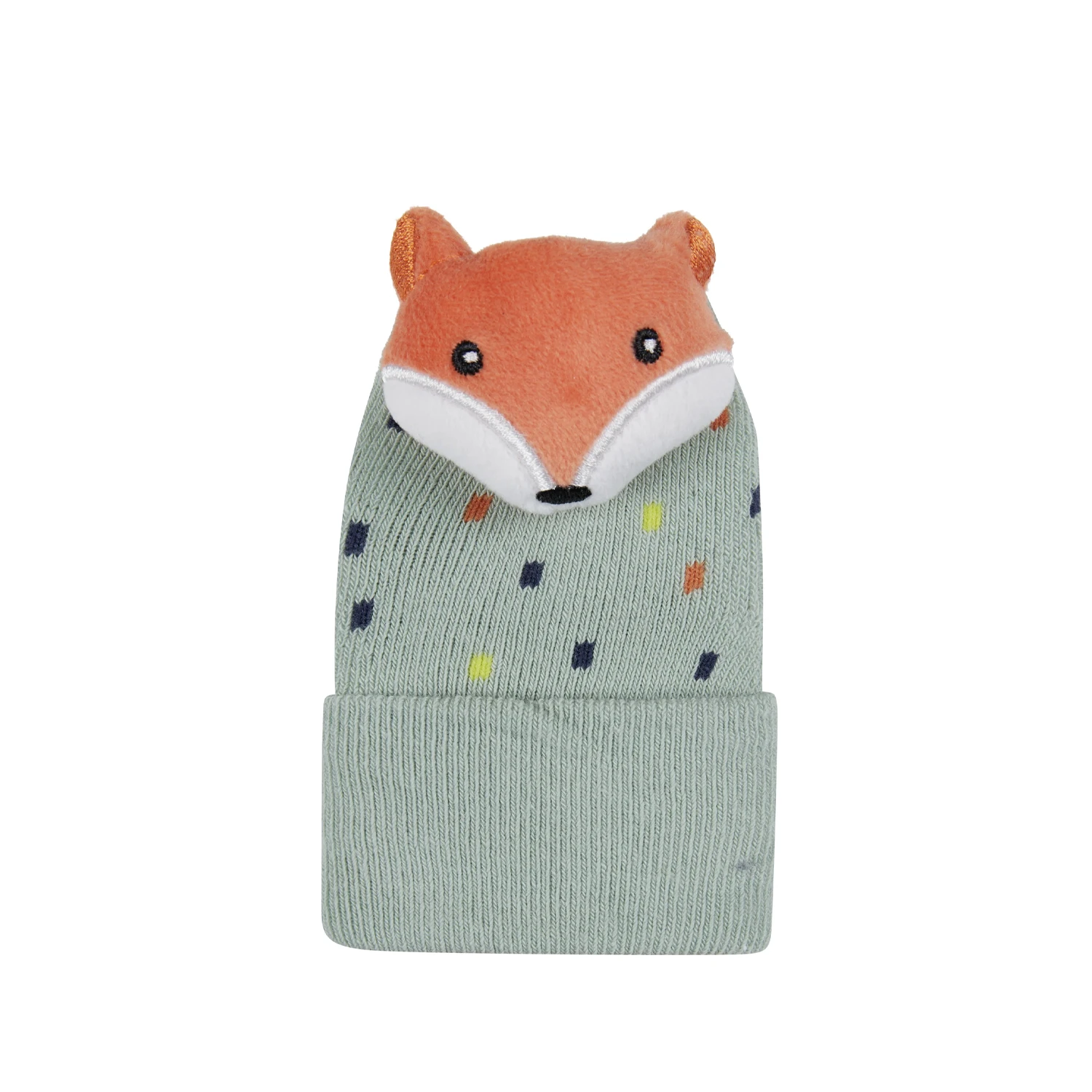 • Design: A calming sage green knit decorated with a colorful “rectangular pattern” and a vibrant orange 3D fox character.