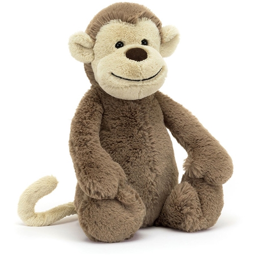 Crafted from silky smooth Bashful fur in a scrumptious creamy chocolate color, this monkey is the ultimate playtime companion. Designed to swing through the trees and bring joy, this soft toy is perfect for babies from 0 to 12 months and toddlers from 1 to 3 years. With its cuddly texture and playful nature, it’s an ideal choice for both play and comfort, making it a favorite for soft toy lovers and a comforting friend for little ones.