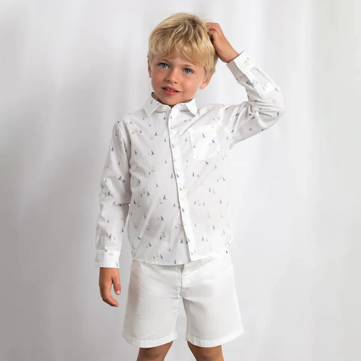 Step into a sun-bleached story with these pristine white twill shorts, a timeless essential for every little dreamer’s summer wardrobe. Whether they are attending an enchanted garden party or enjoying a breezy seaside stroll, these Bermudas offer a classic, polished look without compromising on play. Crafted from a soft cotton blend with just a hint of stretch, they ensure your little explorer stays comfortable and cosy while discovering the magic in every sun-drenched afternoon.