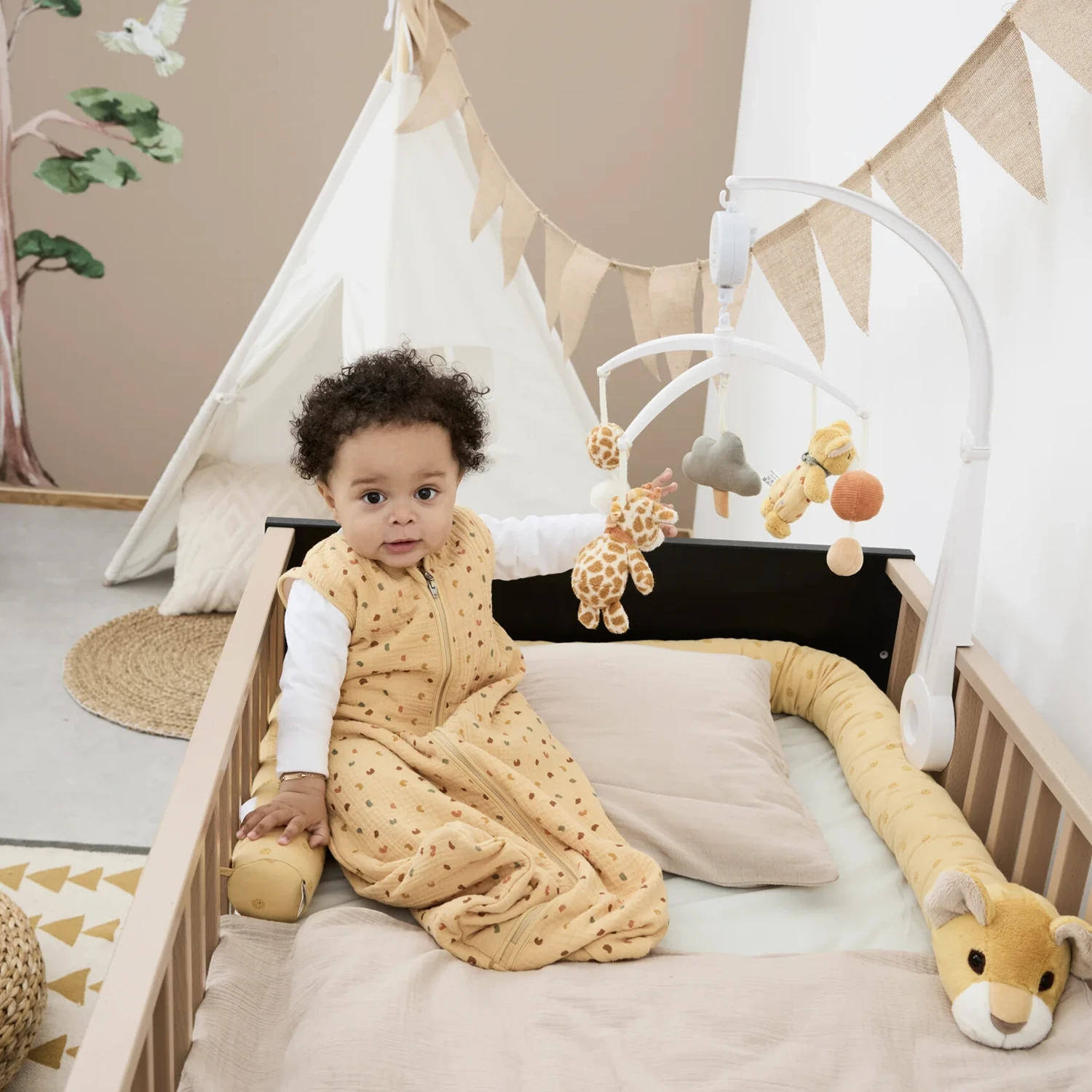 Keep your little king of the jungle safe and snug! This soft bed roller is designed to provide a protective, cushioned boundary along the crib rail, preventing bumps while adding a touch of savanna charm to the nursery.