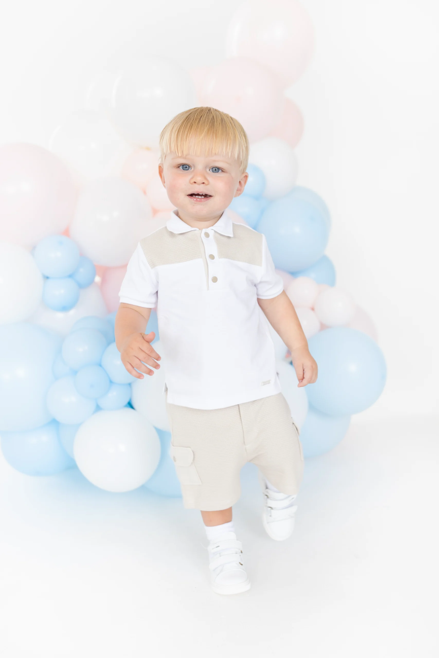 This dreamy two-piece set from Blues Baby is the epitome of timeless elegance for little explorers. Combining a crisp white aesthetic with soft textured beige, it is a seasonal favourite that transitions perfectly from a sunny afternoon in the park to a more formal family gathering.