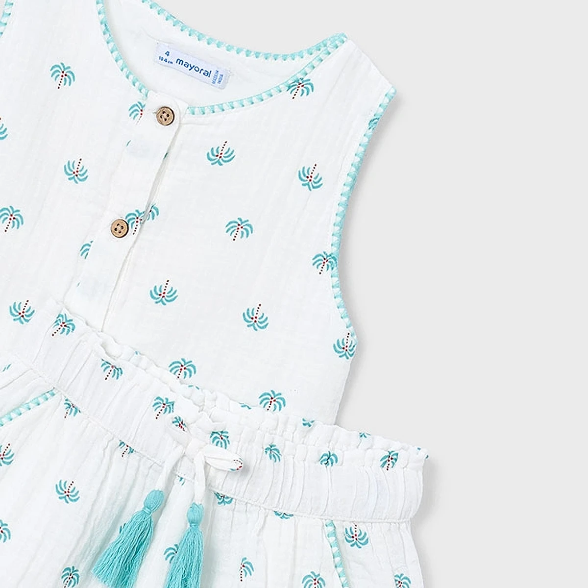 Playful Tassel Detail: The matching shorts feature an elasticated waistband with a decorative drawstring finished with vibrant turquoise tassels.