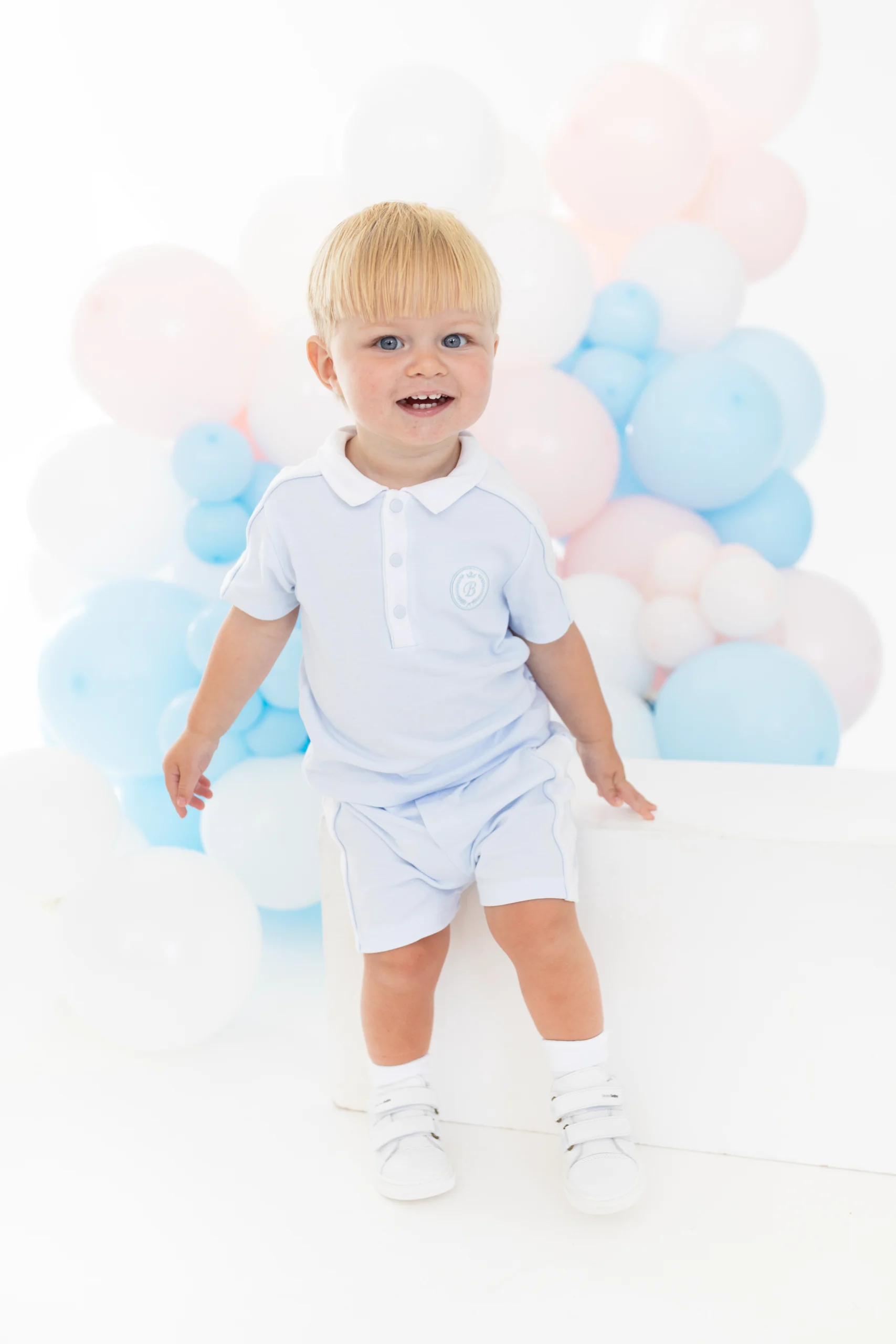 • Short-sleeved polo shirt in a classic sky blue colour.