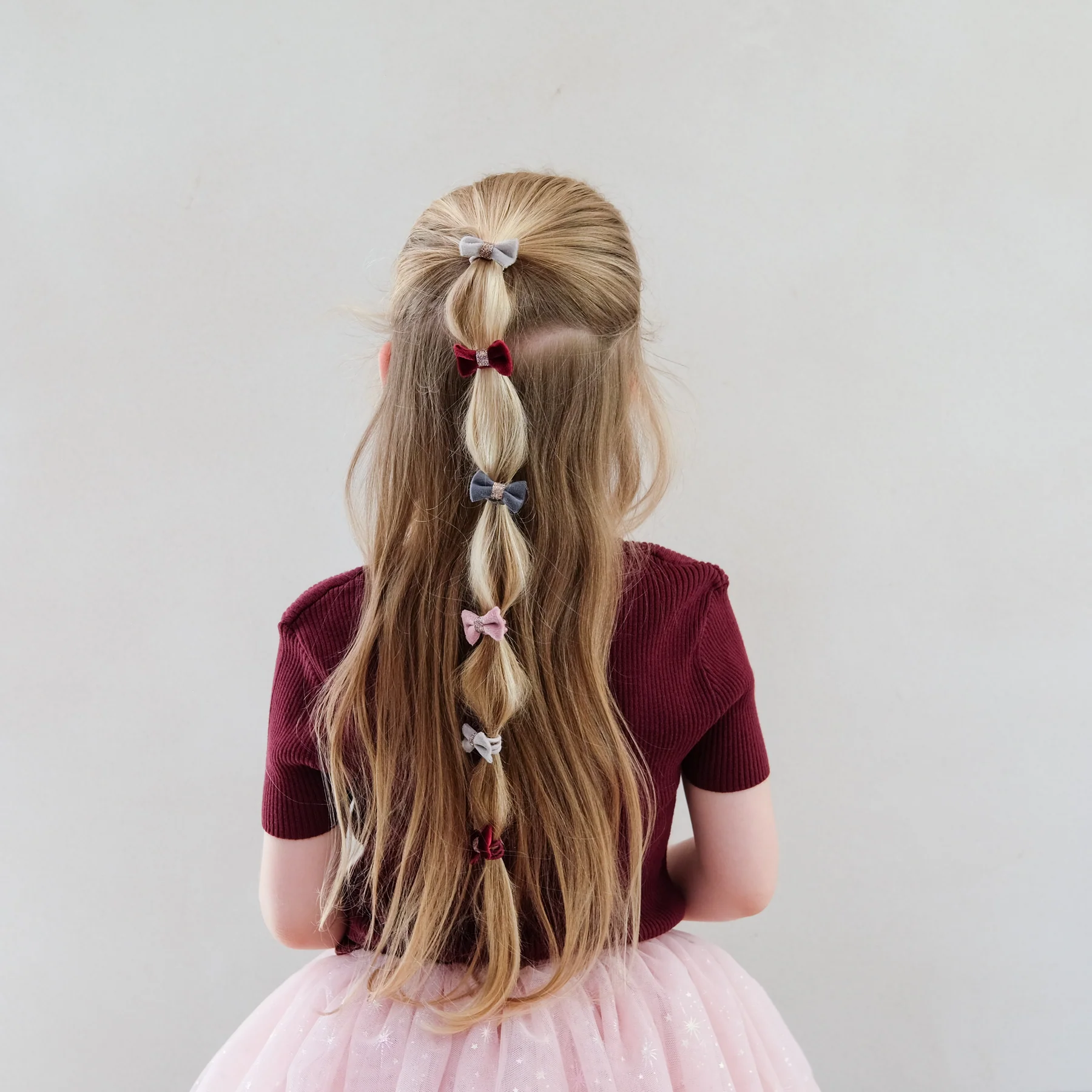 Add a touch of festive luxury to every ponytail and plait with these delightful Christmas Velvet Bow Mini Ponies. Bursting with rich, seasonal colours, this pack is the perfect way to elevate their holiday hairstyles.