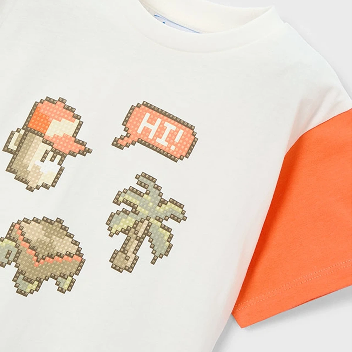 Level up his summer style with this retro-inspired essential! This Mayoral tee blends a classic tropical theme with a modern “8-bit” gaming aesthetic, making it a standout choice for the little explorer who loves both the beach and the console.