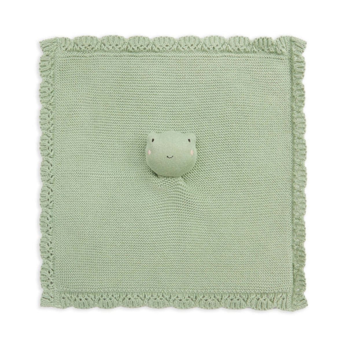Perfectly sized for tiny hands to hold, squish, and carry everywhere, the organic cotton cuddle cloth features a beautifully scalloped edge and a gentle texture that stimulates touch while soothing your baby. Whether it’s for naptime cuddles, long car journeys, playtime in the garden, or even as a reassuring friend at family gatherings, this little frog is always ready for an adventure by your baby’s side.