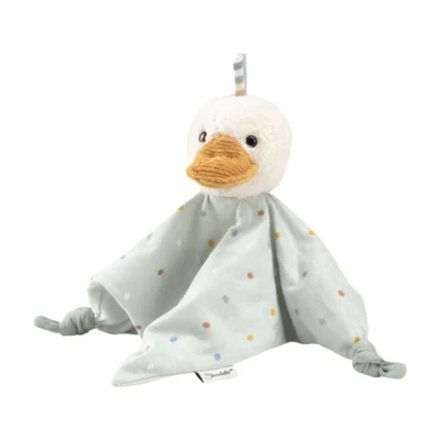 Edda the duck is a gentle and lightweight companion designed to soothe and entertain your little one from day one. Combining a soft plush head with a breathable muslin body, this cuddly cloth is as practical as it is adorable—making it a perfect first friend for any nursery.