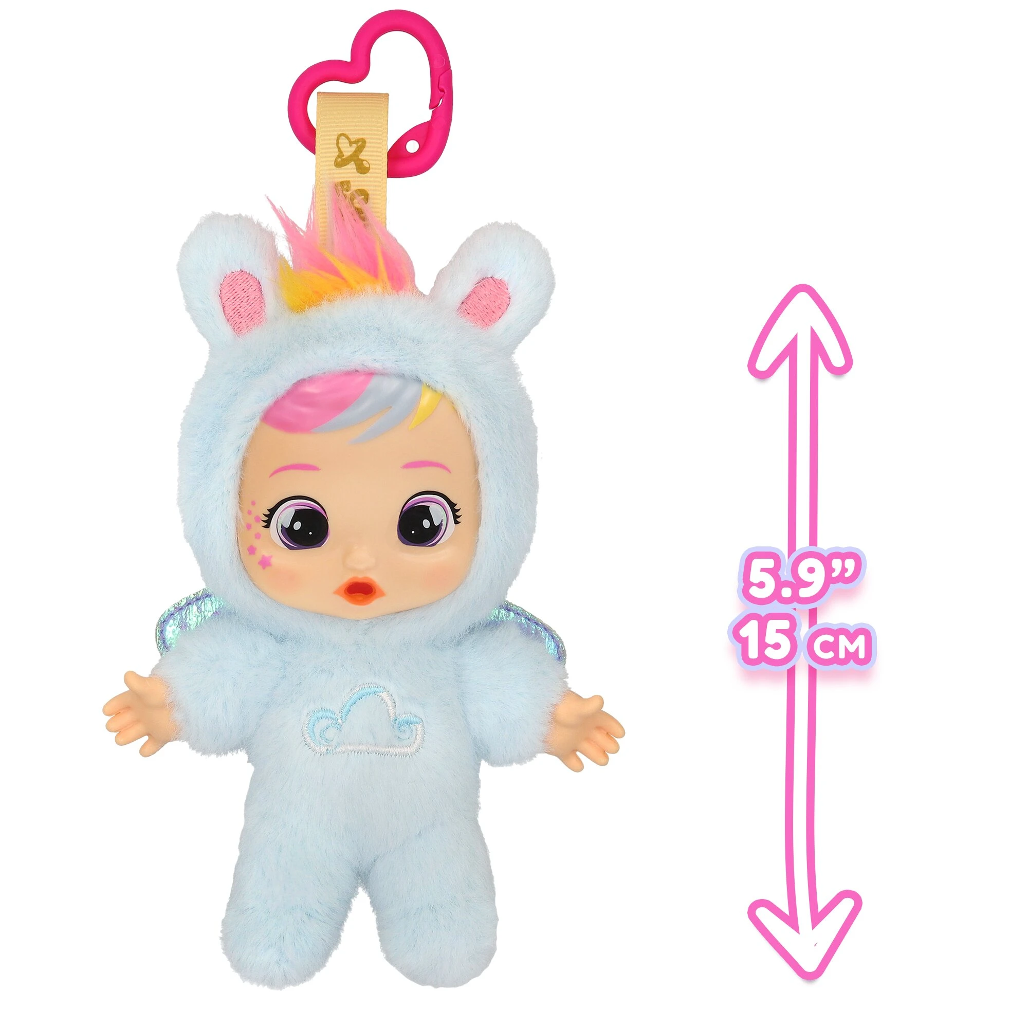 Meet Dreamy, the enchanting blue fairy from the Cry Babies Cuties collection. This mini plush doll is a “dreamy” combination of a soft, huggable body and the iconic expressive features of the Cry Babies world, making it a favourite for on-the-go play.