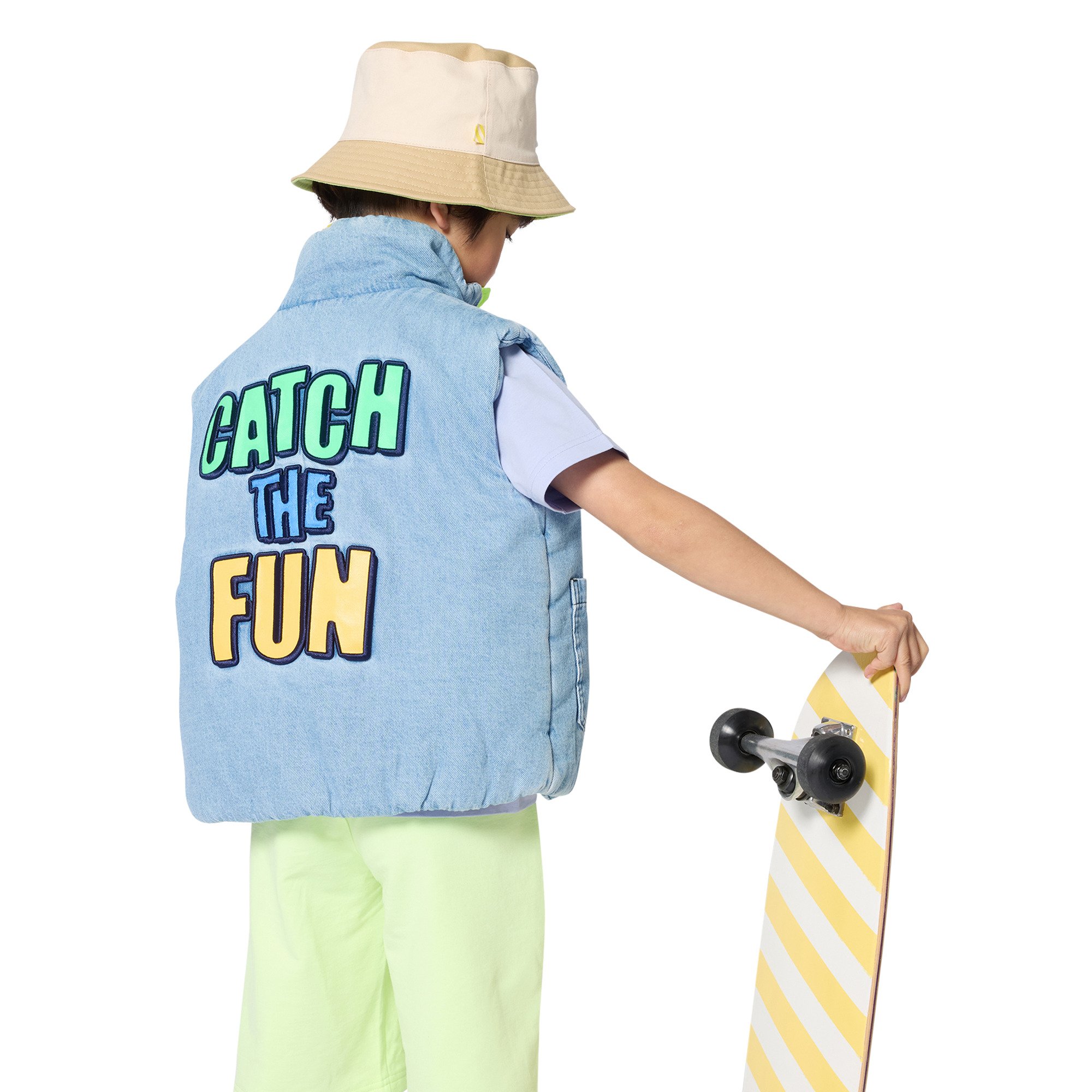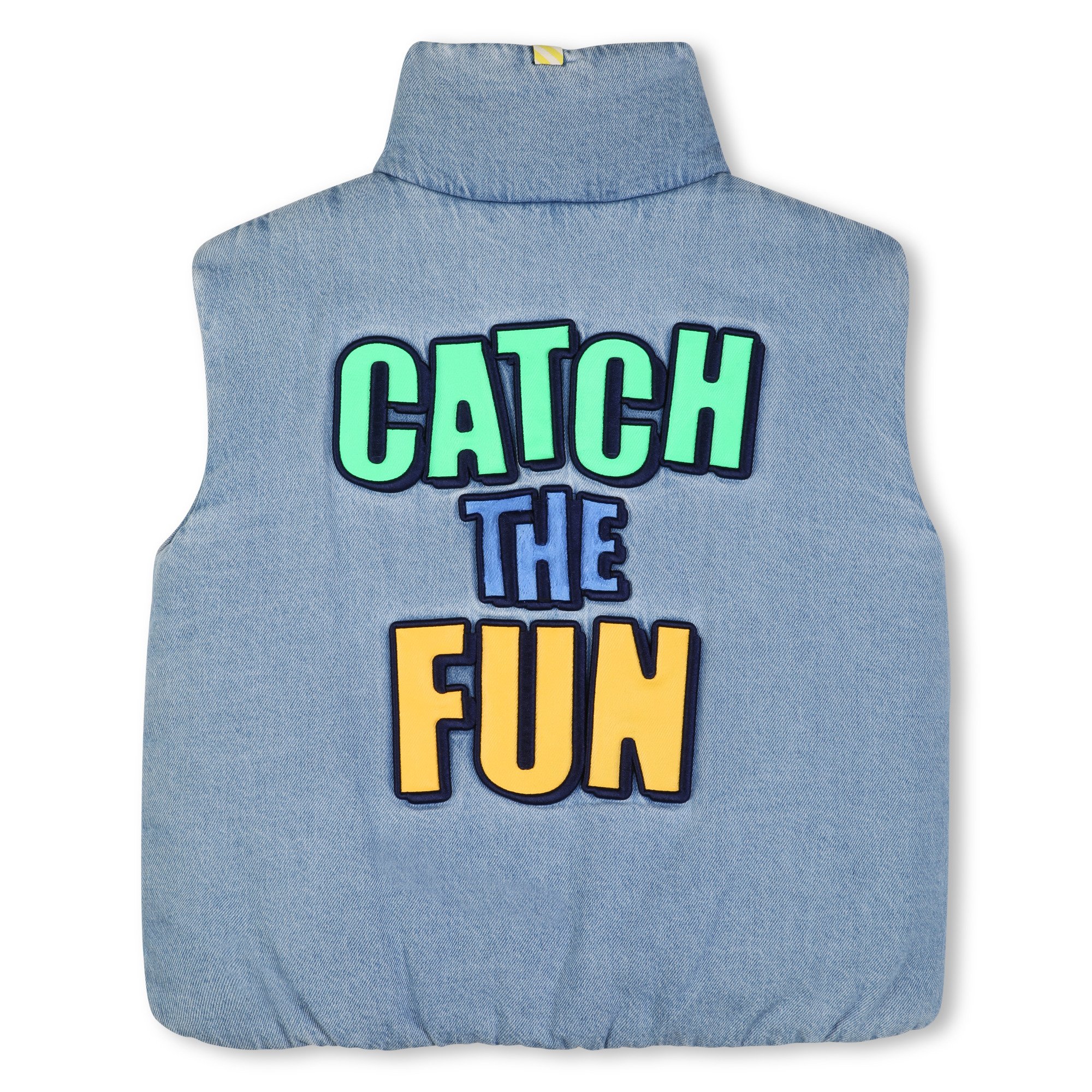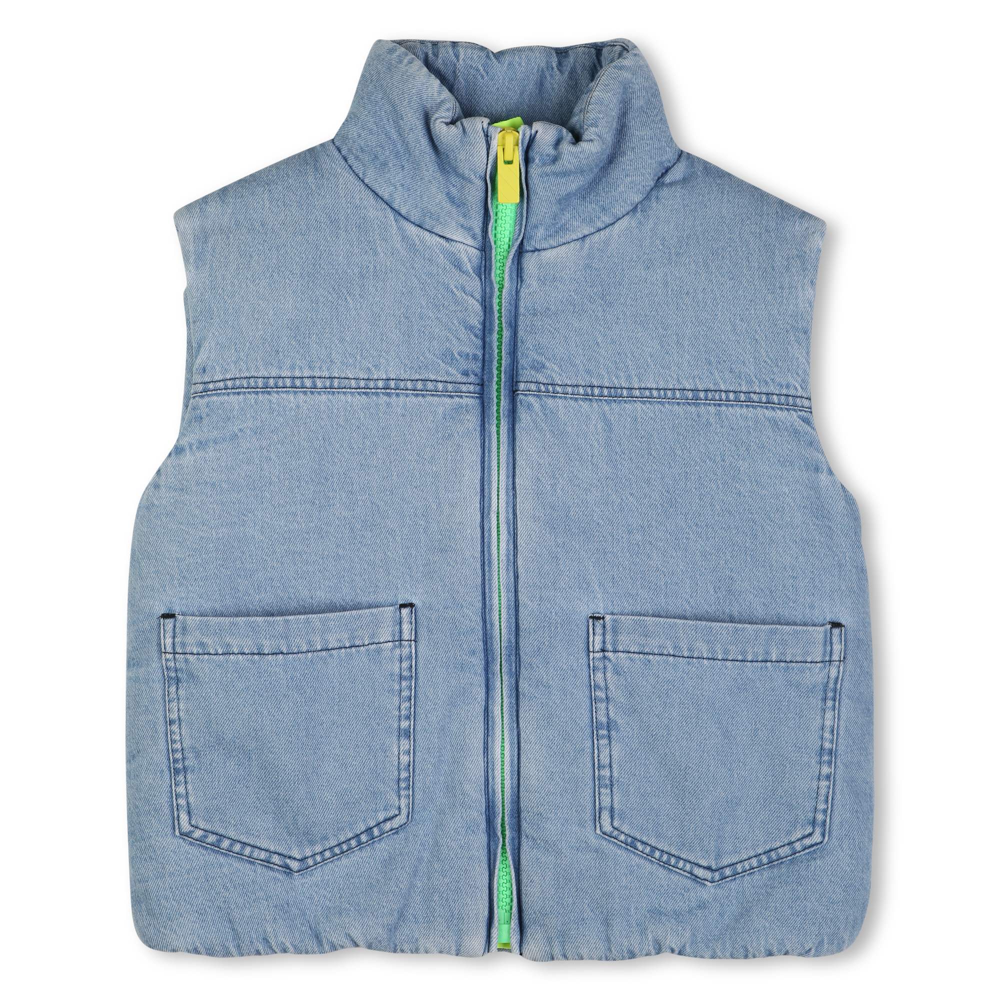Strike the perfect balance between urban style and cozy comfort with this Billieblush denim down jacket. Designed for active children, this lightweight gilet features a sleeveless cut that offers maximum freedom for movement and play. Its soft denim exterior is elevated by a vibrant embroidered back, making it a standout layering piece for a casual, bright look during any daily adventure.