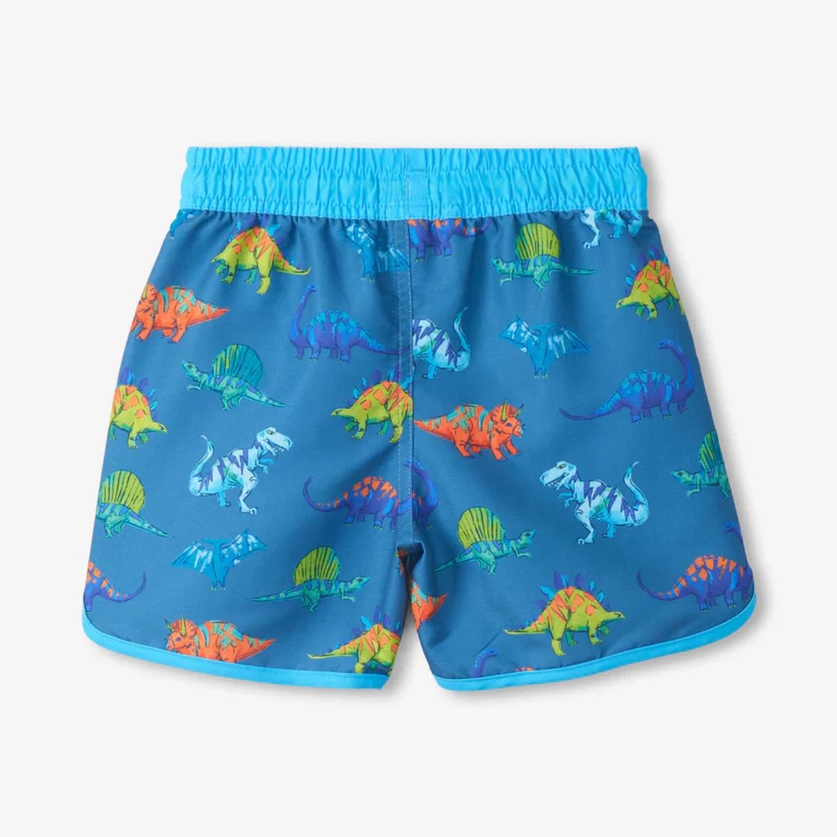 A Prehistoric Storybook Print: The whimsical, sketched-style dinosaurs turn every swim into a magical encounter with long-lost friends.