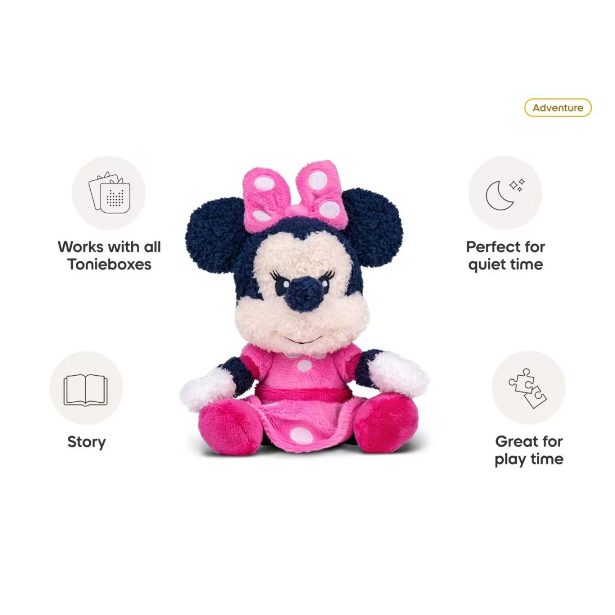 Say hello to the Disney Minnie Mouse Cuddle Tonie, a “dreamy” blend of soft-touch play and creative storytelling. Wrapped in the softest fleece, Minnie invites little ones into her sweet corner of Toontown, offering a tactile experience that is a favourite for both daytime adventures and cosy wind-down moments.