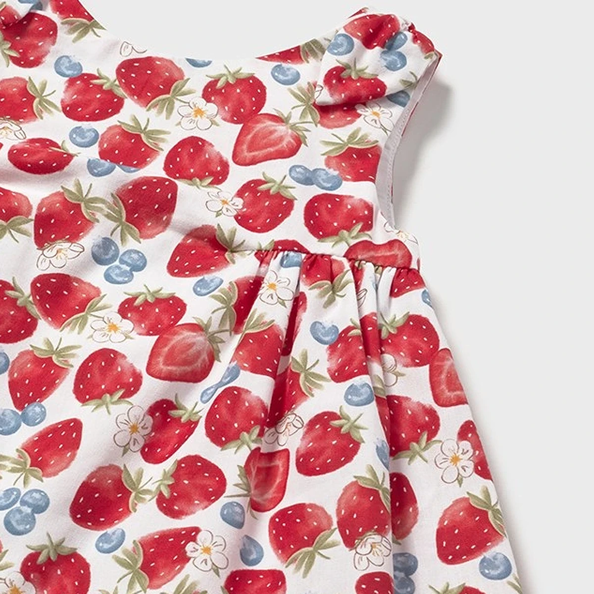 Sweet as a summer punnet! This delightful cotton dress is a “fresh pick” for sunny garden days and special family outings. With its vibrant fruit motif and charming details, it’s designed to keep her looking berry cute and feeling completely comfortable.