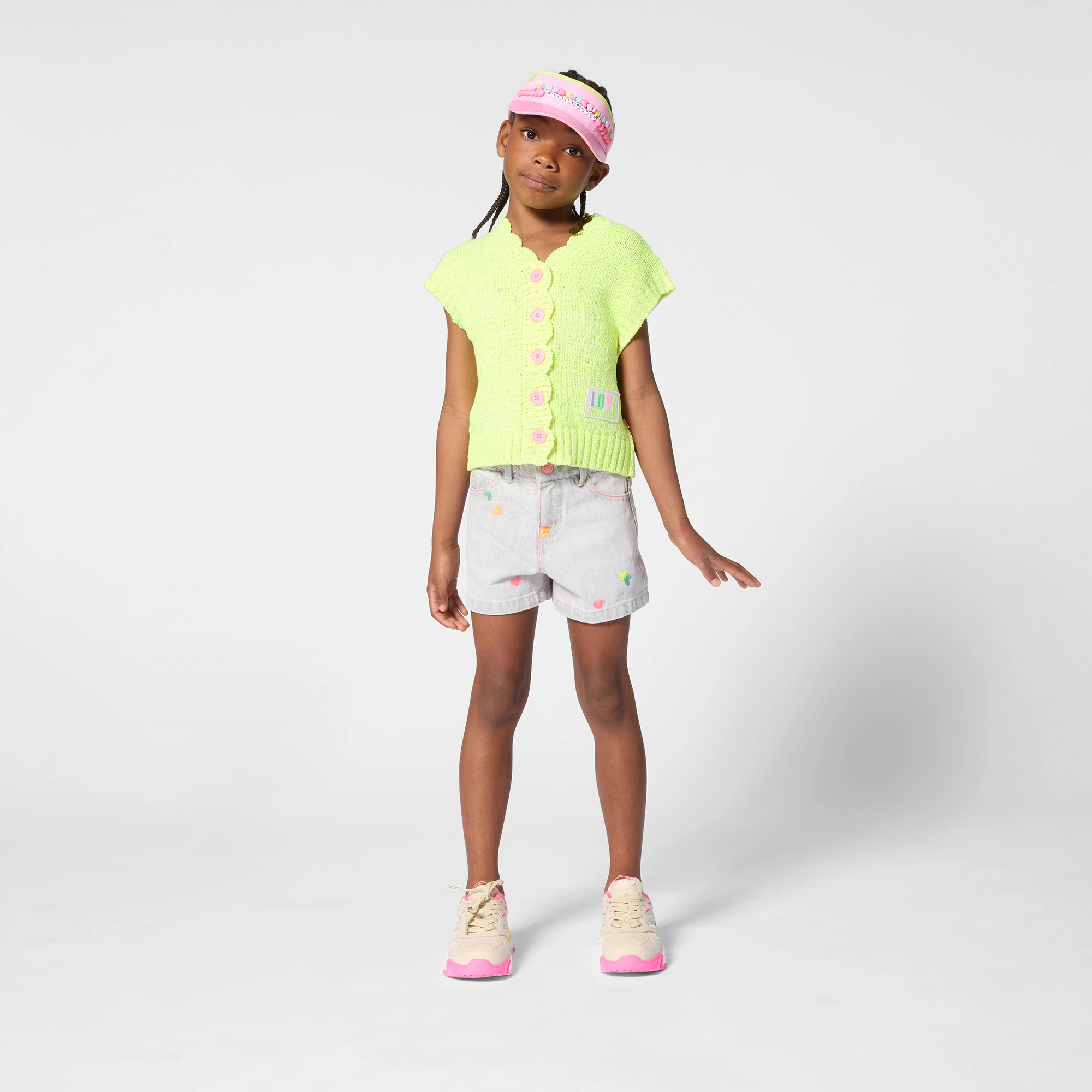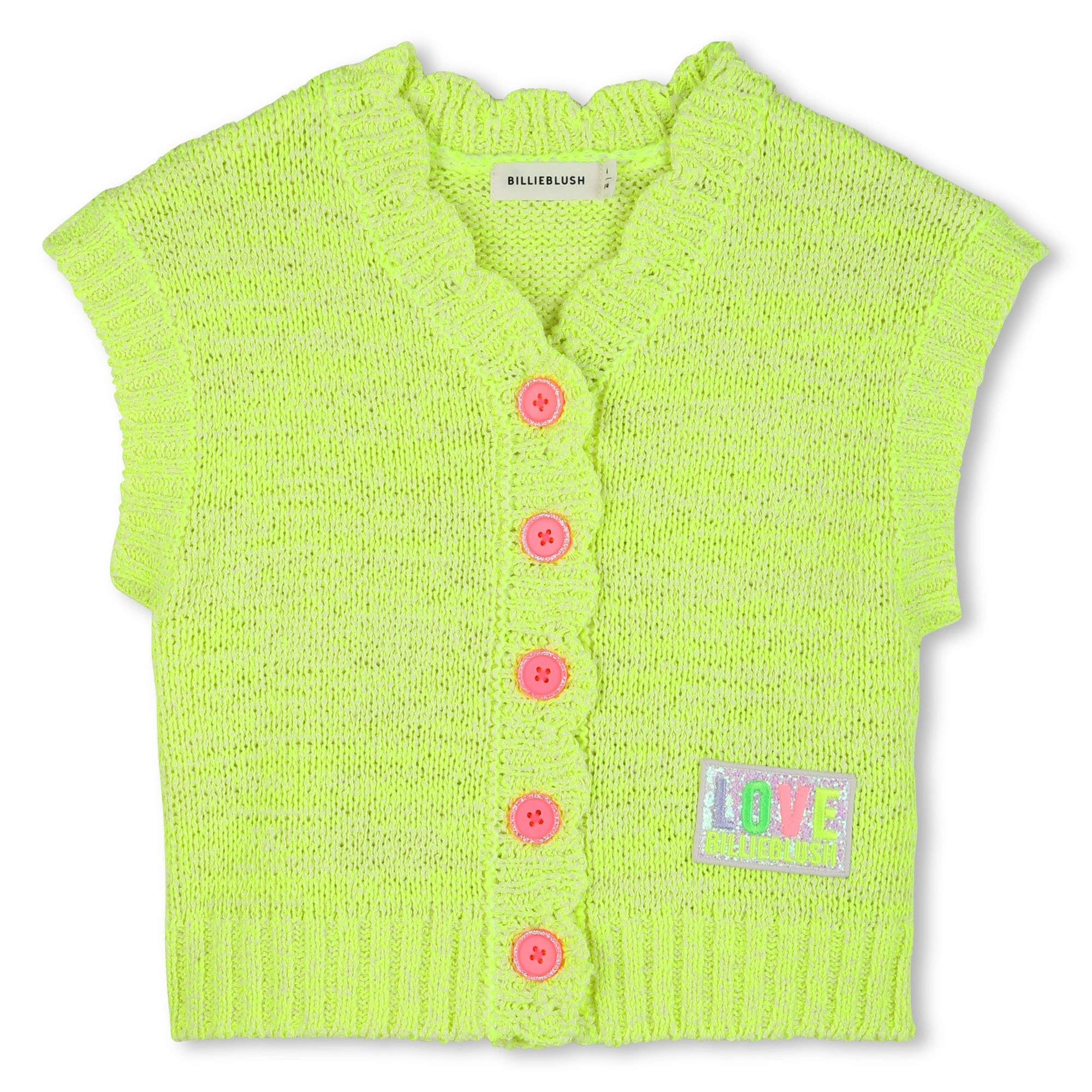 Add a jolt of neon sunshine to her wardrobe with the Billieblush Electric Yellow Gilet. Crafted from a novelty yarn with a wonderfully soft, fluffy texture, this sleeveless cardigan is designed to wrap little adventurers in comfort while making a bold style statement.