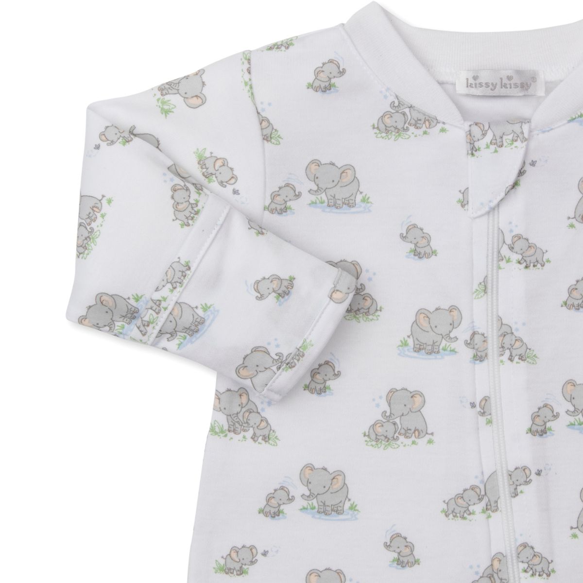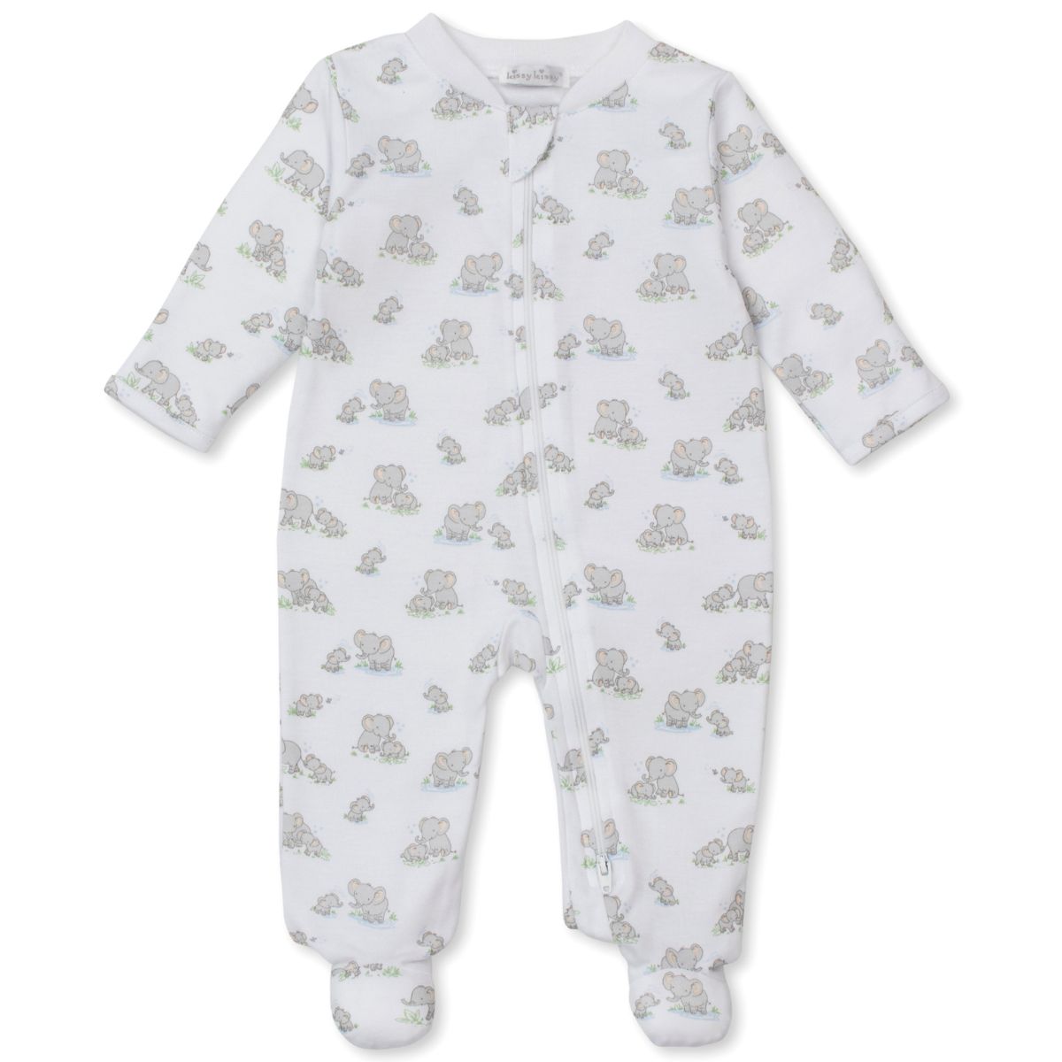 Wrap your little dreamer in the softest embrace for their first big adventures. This cosy, zippered footie features the adorable Elephant Esprit print, where friendly grey elephants and their babies explore a tiny world.