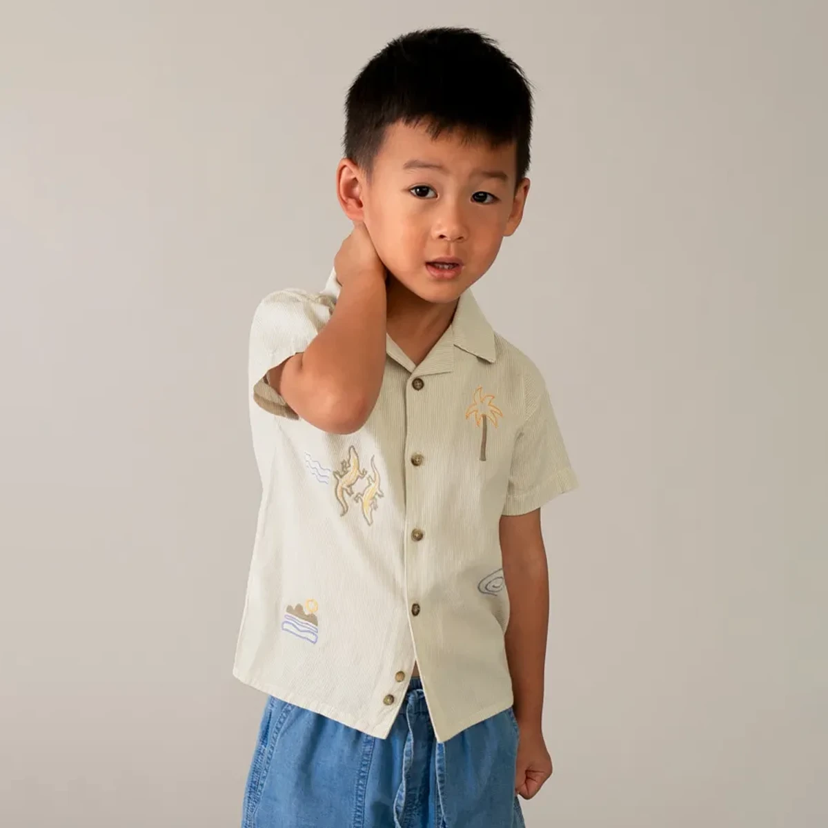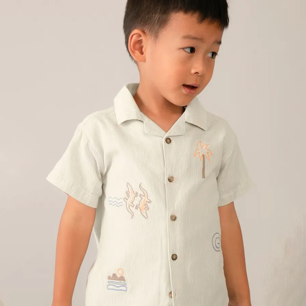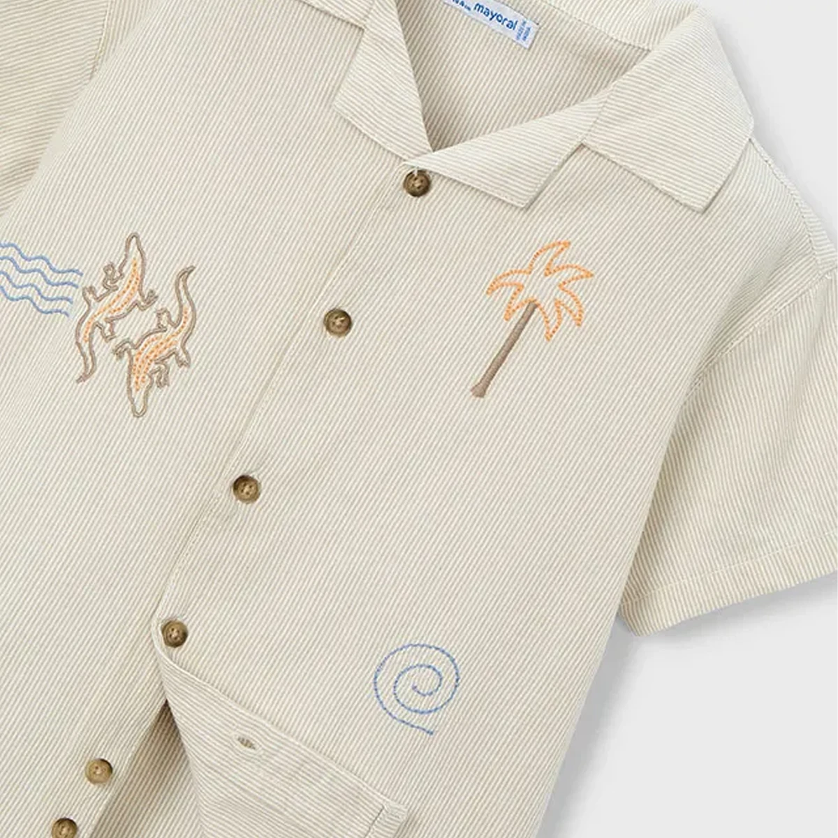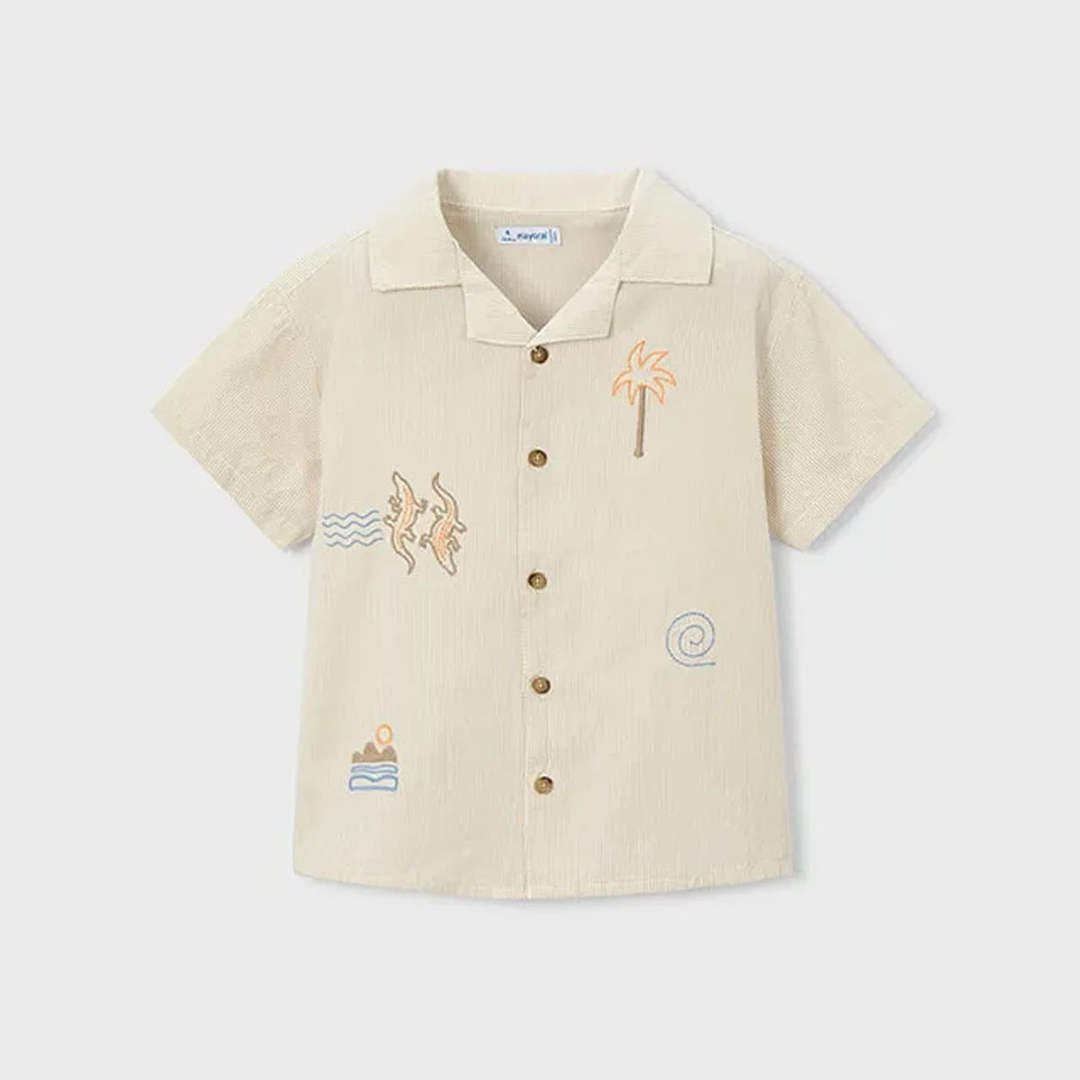 Set sail for summer adventure with this breezy Mayoral button-down. Combining a classic revere collar with playful island-inspired embroidery, this shirt is a high-quality staple for little explorers who want to stay cool while looking sharp.