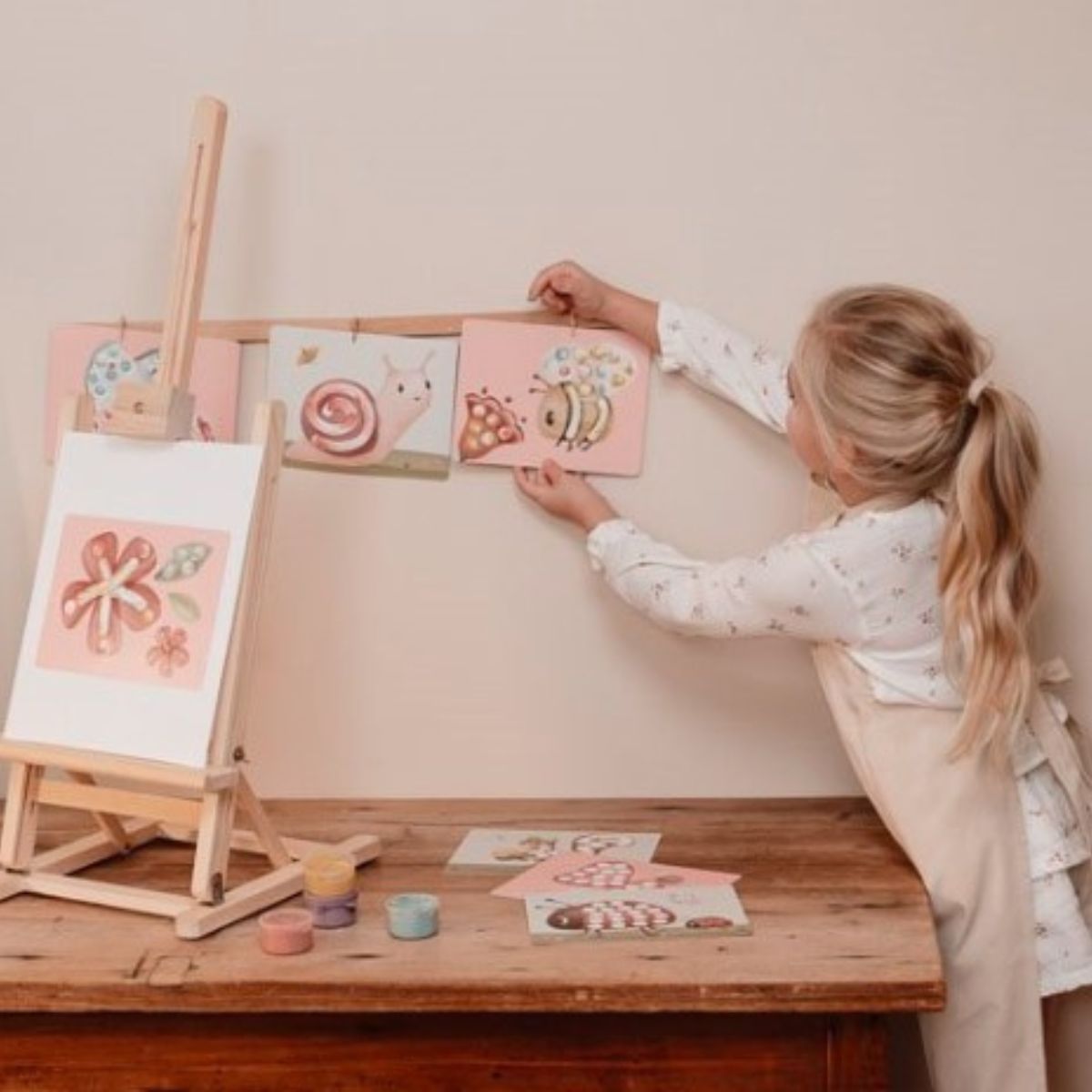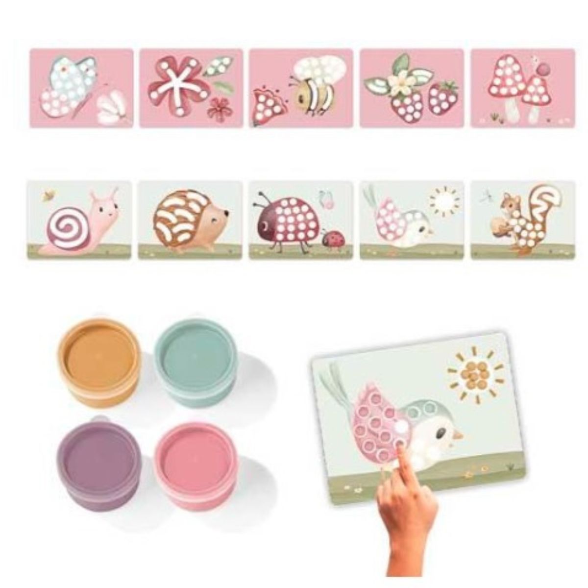 Let your little one playfully discover nature with the finger paint set from the Fairy Garden series. Specially designed for little hands, this colourful set invites your little one to let their creativity run wild. With four soft shades and cute pre-printed cards of, for example, a ladybird or pretty butterfly, your child can get straight to work creating the most beautiful works of art. The paint is safe and easy to wash out, ideal for hours of crafting fun. As your little one fills the cards with the colourful paint, it stimulates the development of fine motor skills, eye-hand coordination as well as creativity. Let their imagination blossom as they playfully bring the wonders of the Fairy Garden to life. Suitable for children aged 3 and up.