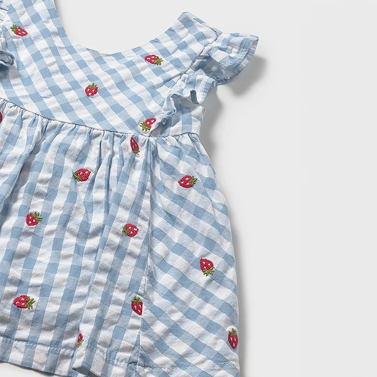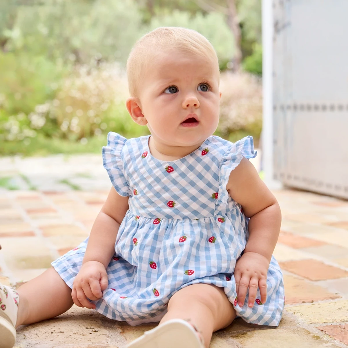 A “berry” sweet choice for her summer wardrobe! This classic gingham dress set combines a vintage-inspired aesthetic with the natural comfort of pure cotton, making it the perfect outfit for sunny picnics and garden play.