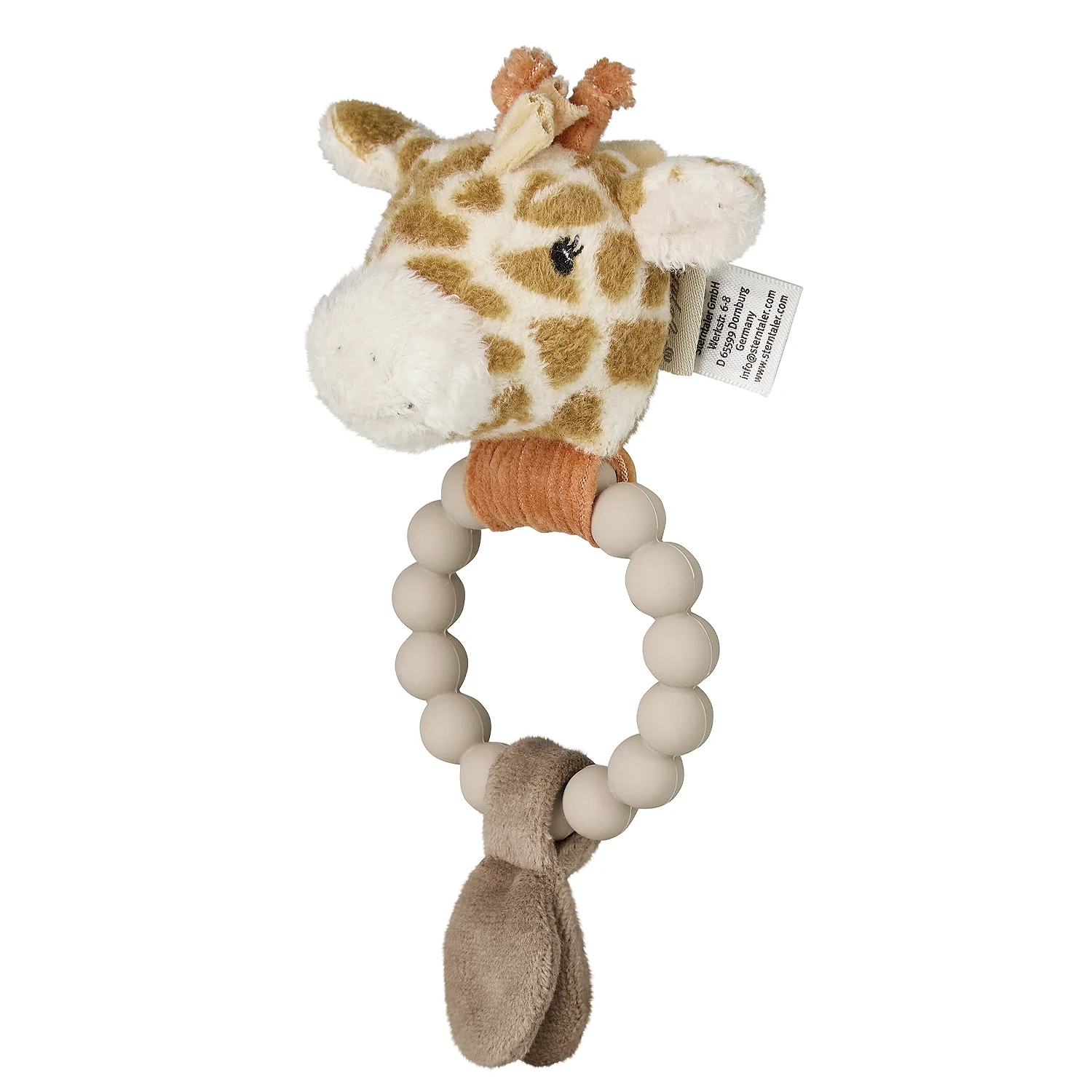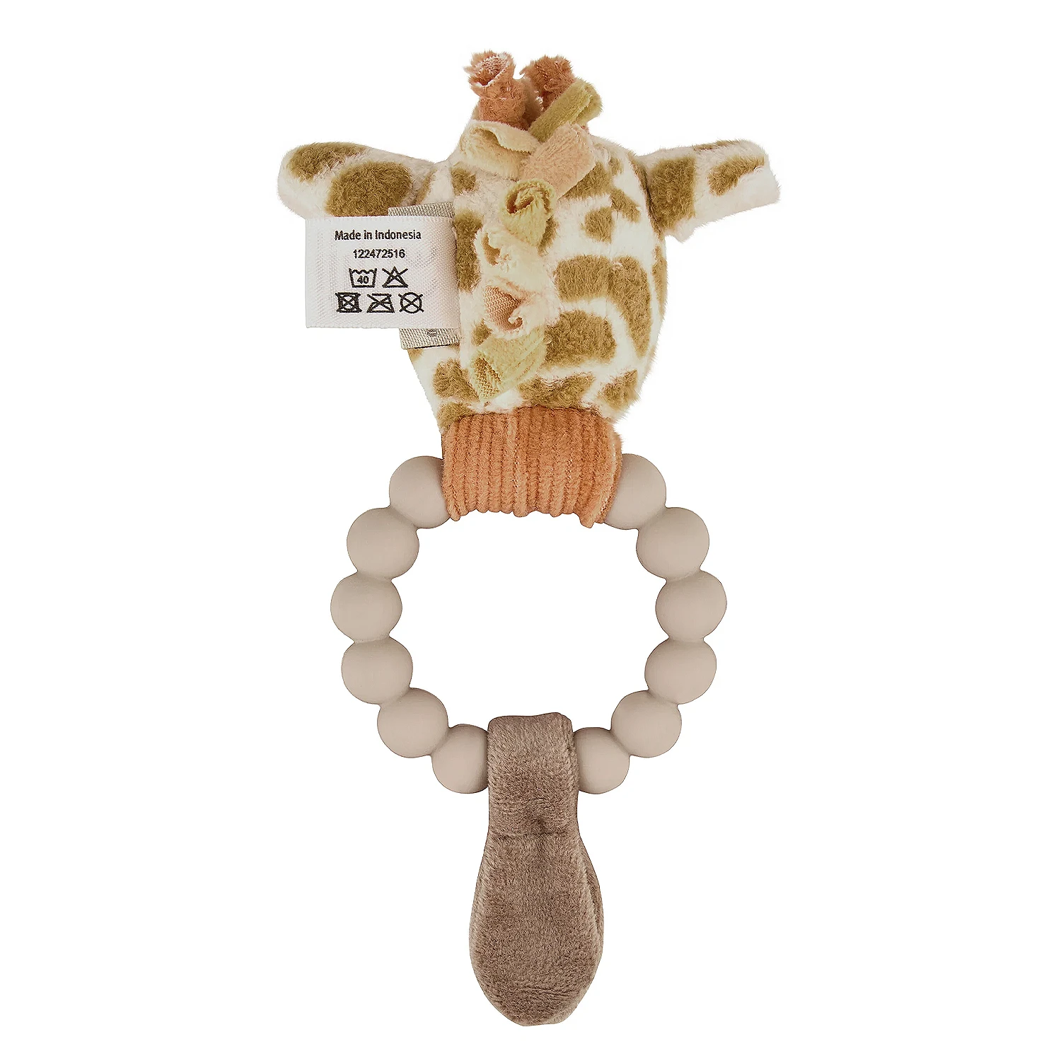 Kaya is here to provide comfort and relief! This clever 2-in-1 toy combines a soft plush giraffe head with a structured silicone ring, designed to entertain your baby while gently soothing their gums during teething.