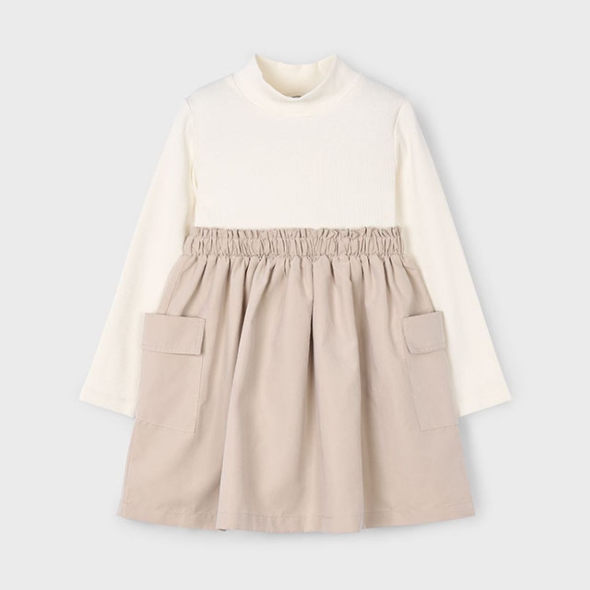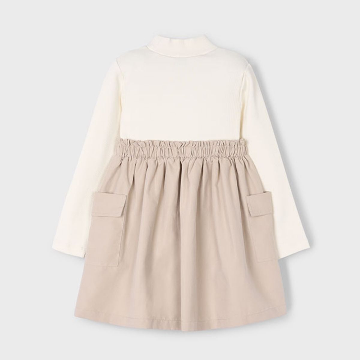 Girls’ Two-in-One Dress – Cream & Taupe