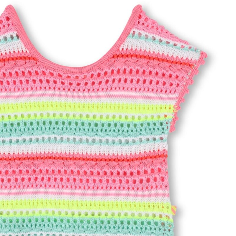 Beautiful multicoloured dress for girls by BILLIEBLUSH. Made from lightweight knitted fabric, this sleeveless dress features a pink, green, and white pattern.