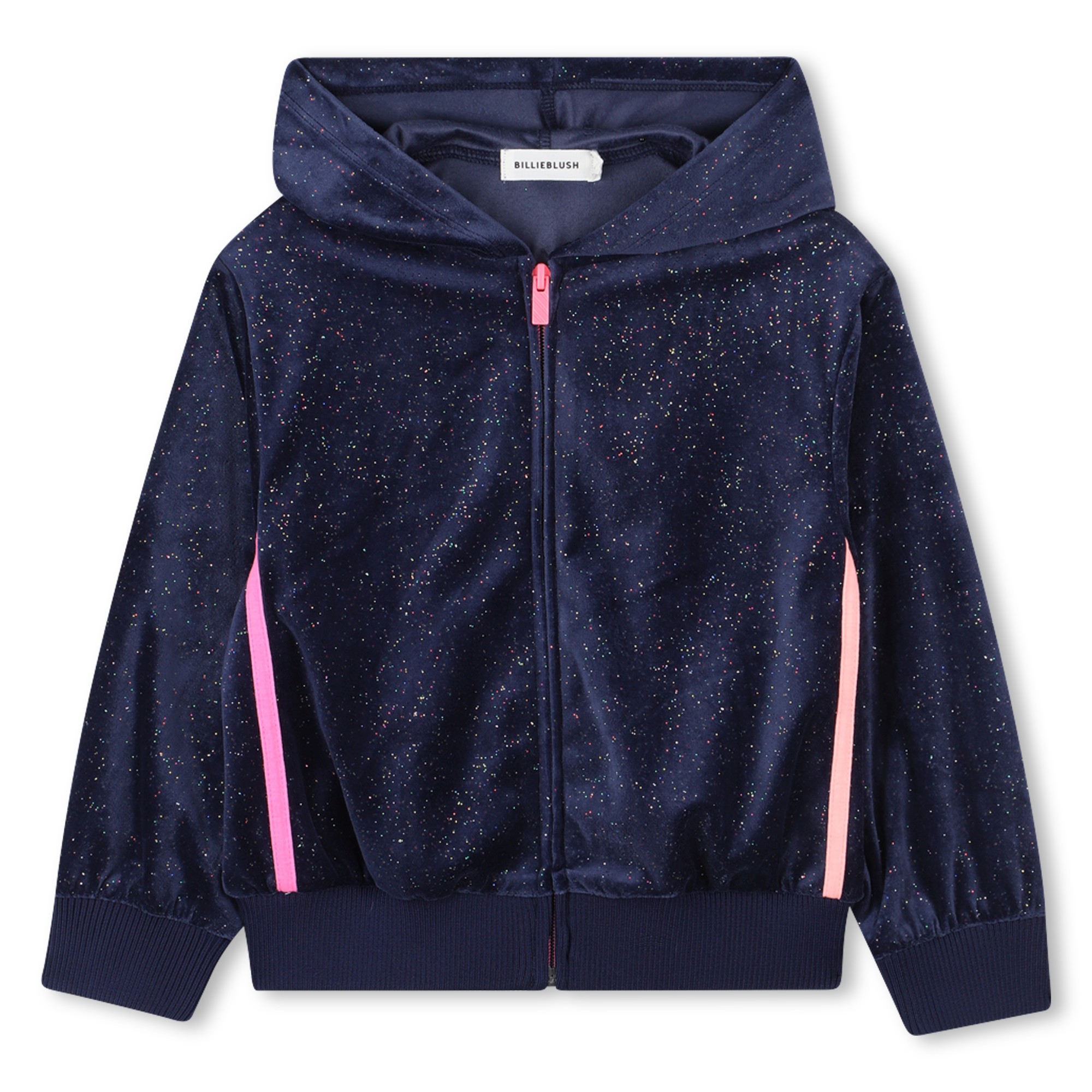 Girls Navy Blue Glitter Velour Zip-Up Hoodie