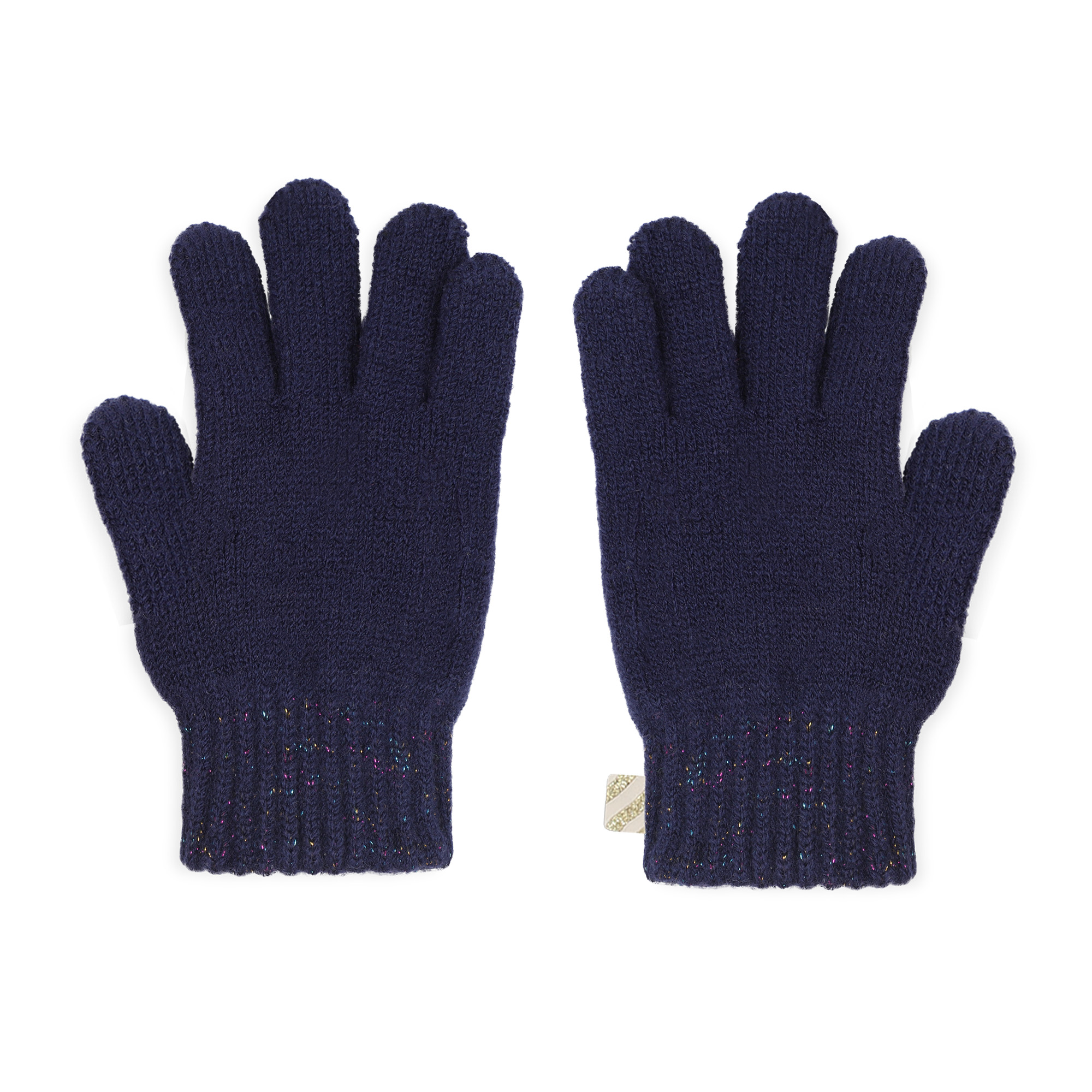 Girls’ Navy Knitted Gloves with Glitter Logo
