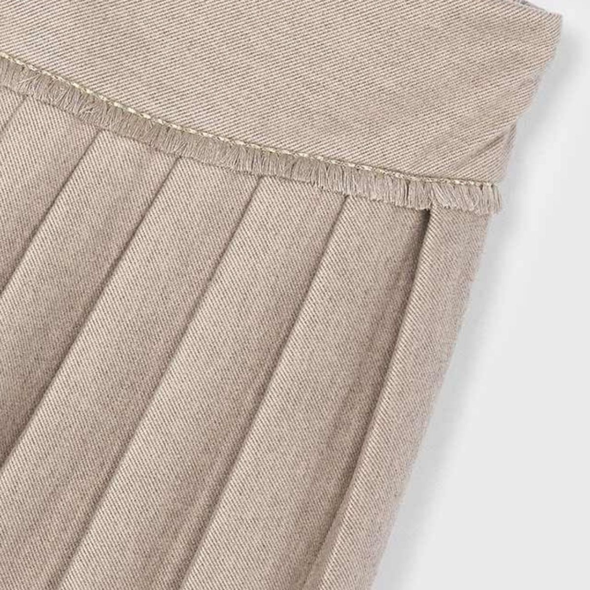 This beautiful pleated skort combines playful elegance with everyday practicality. Designed in a soft taupe tone, it features a clever wrap-over pleated skirt with hidden shorts underneath – perfect for twirls, cartwheels and every little adventure.