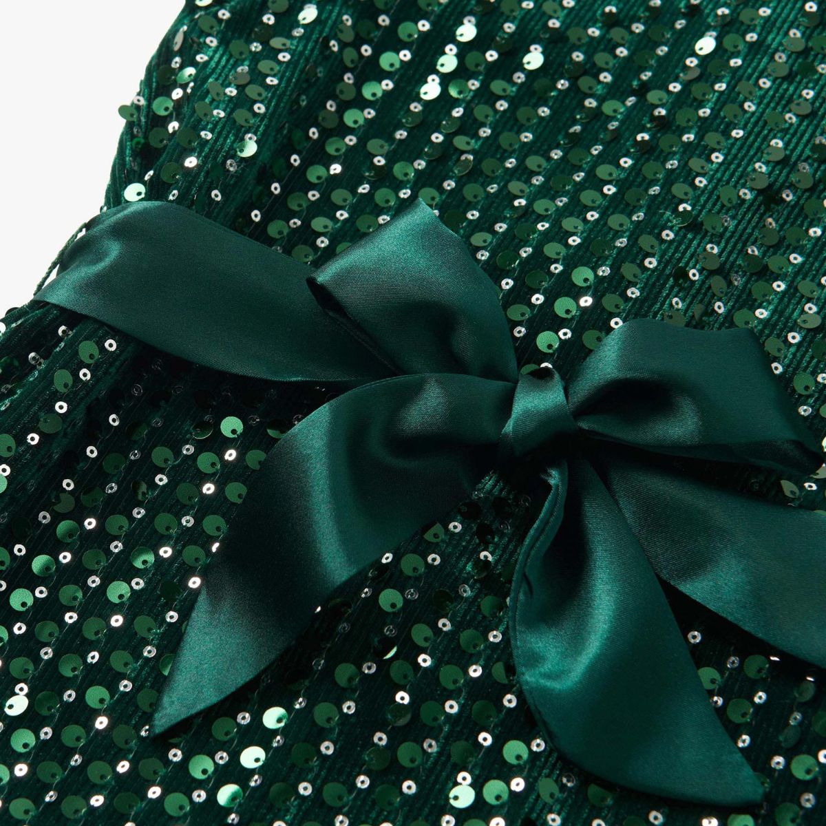 Make every celebration shine with this stunning Girls’ Sparkly Green Sequin Party Dress, the perfect statement piece for the festive season. Designed to dazzle, this beautiful dress is covered in shimmering green sequins that catch the light with every twirl, making it ideal for Christmas parties, family gatherings, and special occasions. The elegant puff sleeves and softly ruffled hemline add a touch of playful sophistication, while the luxurious velvet waistband ties into a charming bow for a picture-perfect finish.
