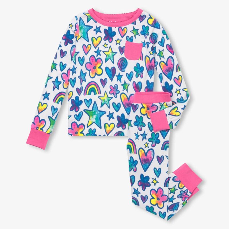 Girls Watercolour Doodles Bamboo Pyjama Set