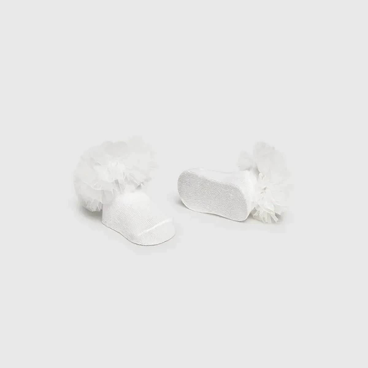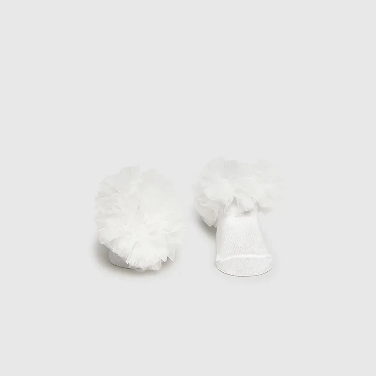 Voluminous Tulle Details: Both the headband and the socks feature oversized, airy tulle ruffles that create a soft, cloud-like aesthetic, making them an instant favourite for professional photoshoots.
