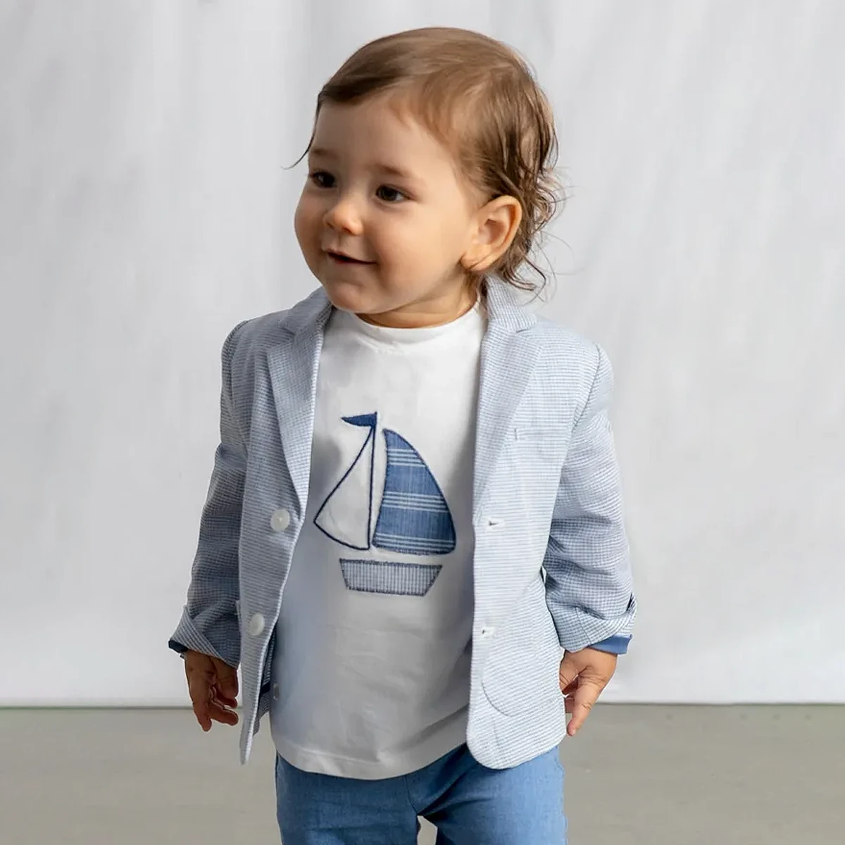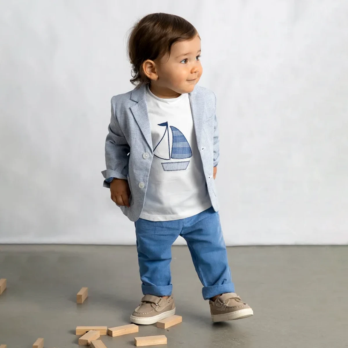 Make way for the most dapper little guest! This Mayoral blazer is a masterclass in “mini-me” styling, combining the effortless charm of a tailored jacket with a lightweight fabric blend perfect for warmer days. Whether it’s a beach wedding, a christening, or a smart family lunch, this piece ensures your little explorer stays cool and looks sharp.