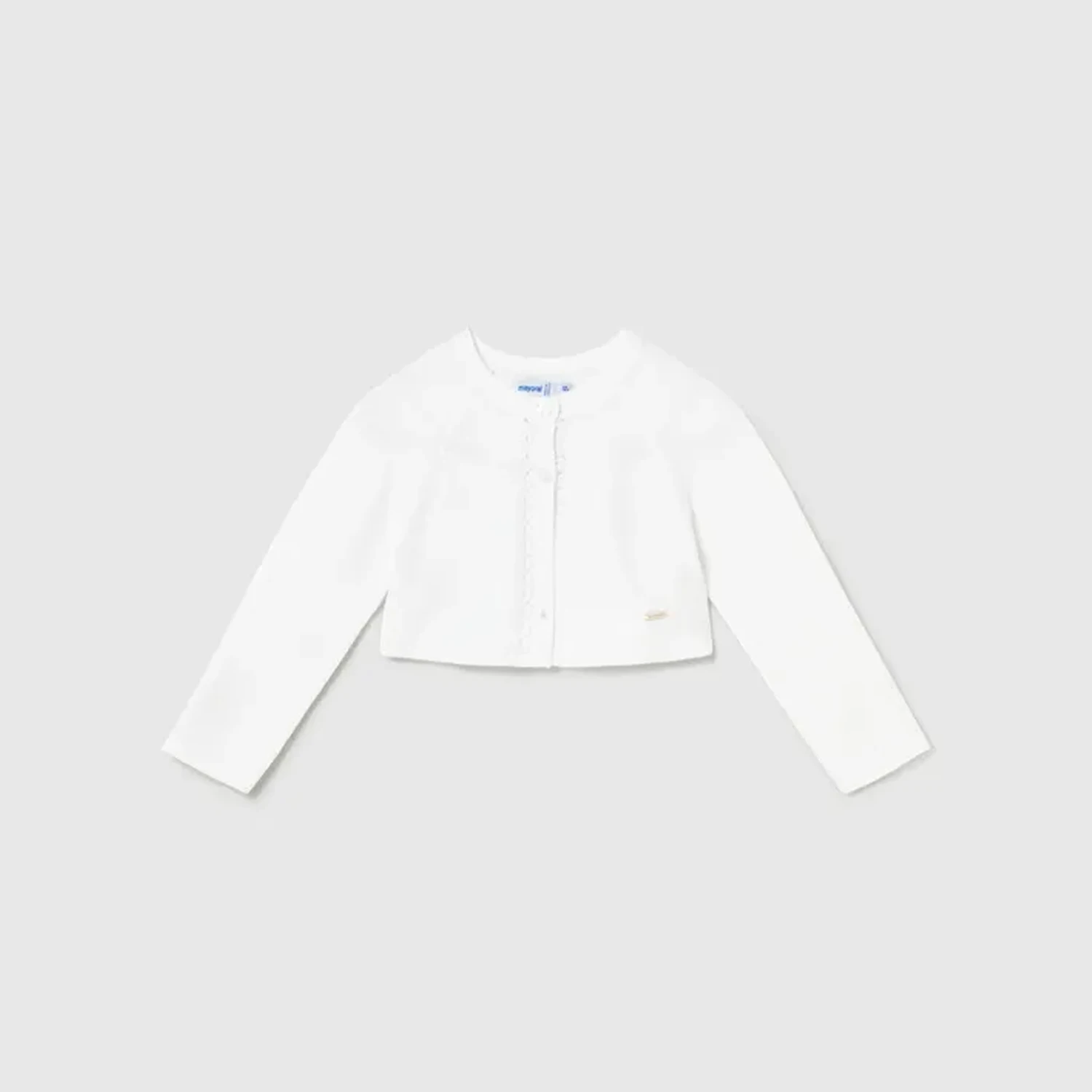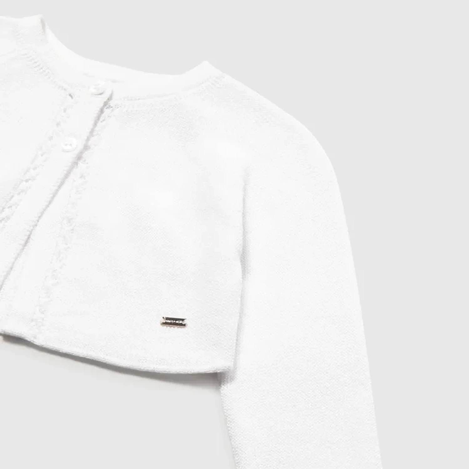 The perfect finishing touch for her most special outfits! This Mayoral bolero-style cardigan is designed to offer a lightweight layer of warmth without hiding the beauty of a party dress. Combining a delicate knit texture with refined feminine details, it is a high-quality staple for ceremonies, parties, or smart family gatherings.