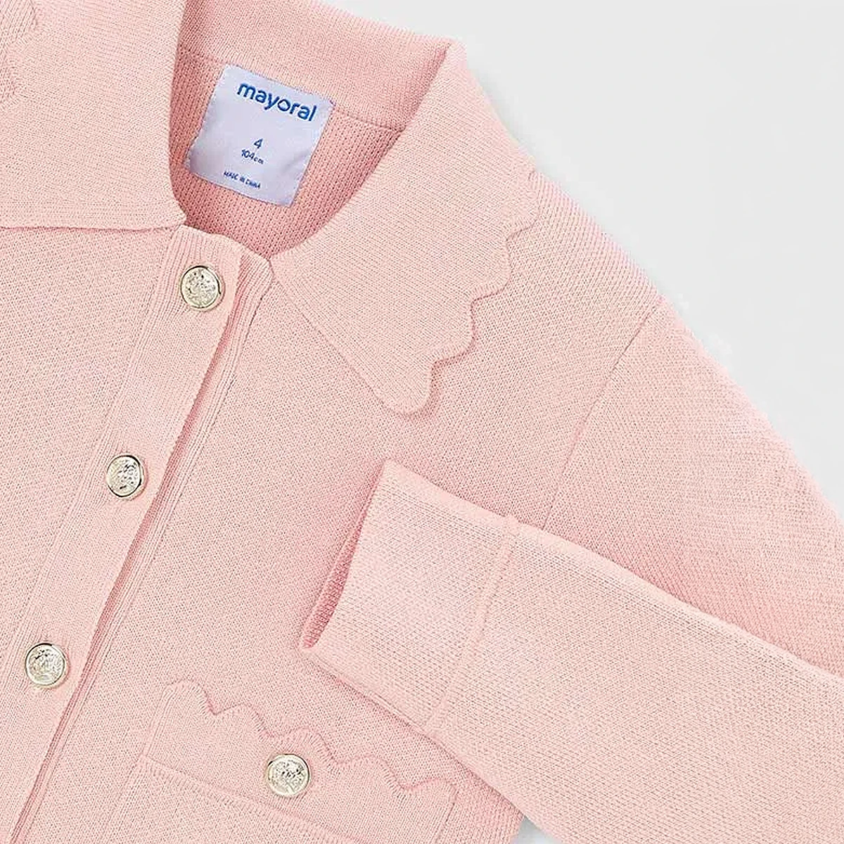 Wrap your little dreamer in a blush-hued cloud with this exquisite knit jacket, designed for those magical moments that feel like a scene from a storybook. Whether they are attending an enchanted tea party or enjoying a crisp morning walk through a secret garden, this soft layer provides the perfect amount of cosy warmth. With its delicate scalloped edges and shimmering buttons, it is a piece that turns every day into a whimsical adventure, ensuring your little one feels as special as they look.