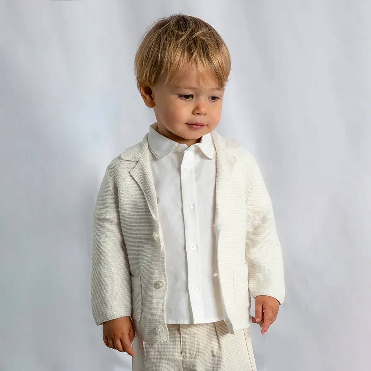 Elevate your little one’s wardrobe with this sophisticated yet cosy piece from Mayoral. This isn’t just a standard cardigan; it’s a beautifully crafted knit blazer that perfectly balances formal style with the soft, breathable comfort of 100% cotton. It’s the ideal choice for those special occasions where they need to look sharp but still want the freedom to move and play.