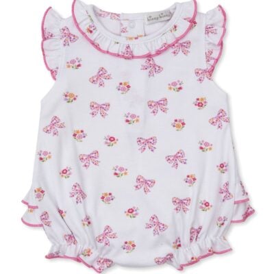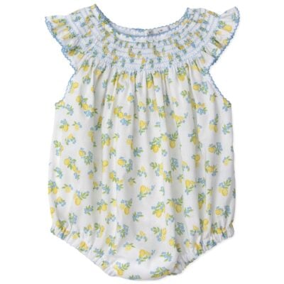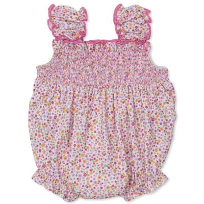Destined to accompany your little dreamer’s very first adventures, this beautiful smocked romper is a truly special addition to her spring or summer wardrobe. Adorned with an expressive floral print of gentle lilac blossoms, it brings a touch of storybook charm to her everyday play.