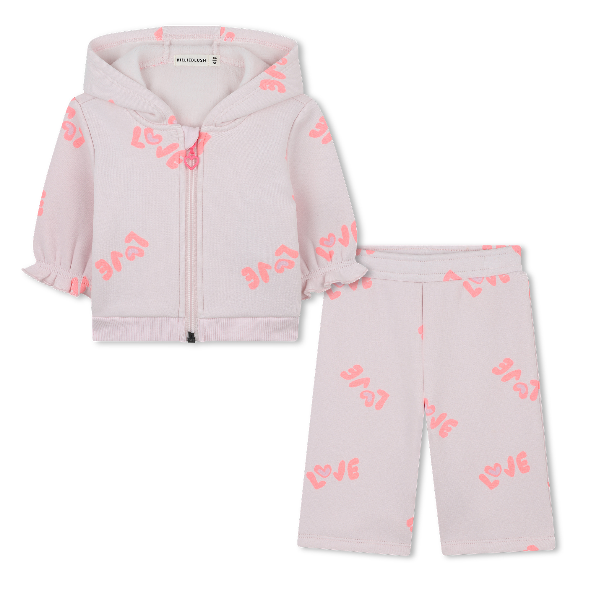 Baby Girls Pink Love Print Tracksuit with Bow Hoodie