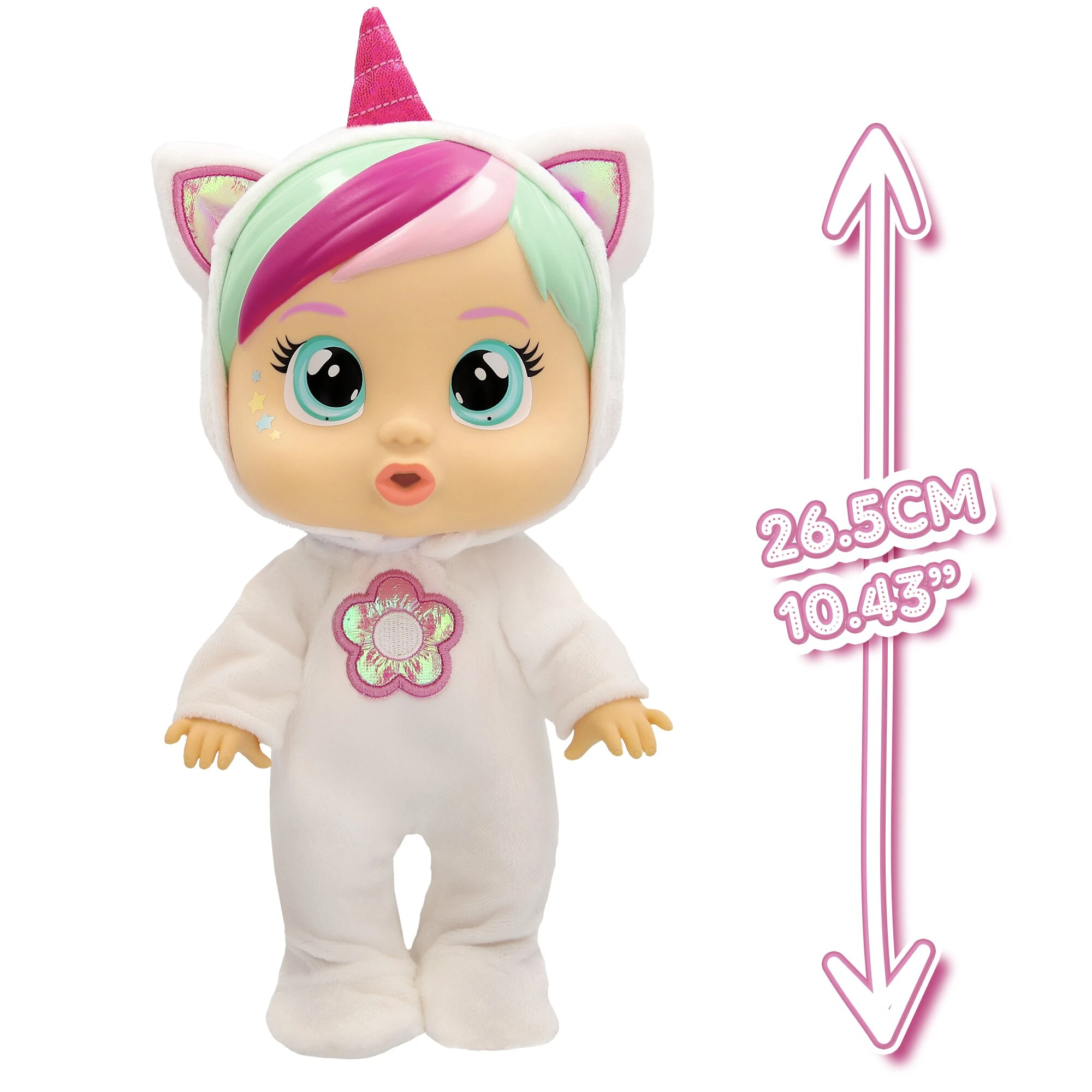 Lena is the “dreamy” fantasy unicorn kitty from the Cry Babies Loving Care range, designed to bring a touch of magic and nurturing roleplay to any nursery collection. With her shimmering horn and cat-eared hood, she is an instant favourite for little ones who love imaginative, “Pinterest-style” play.