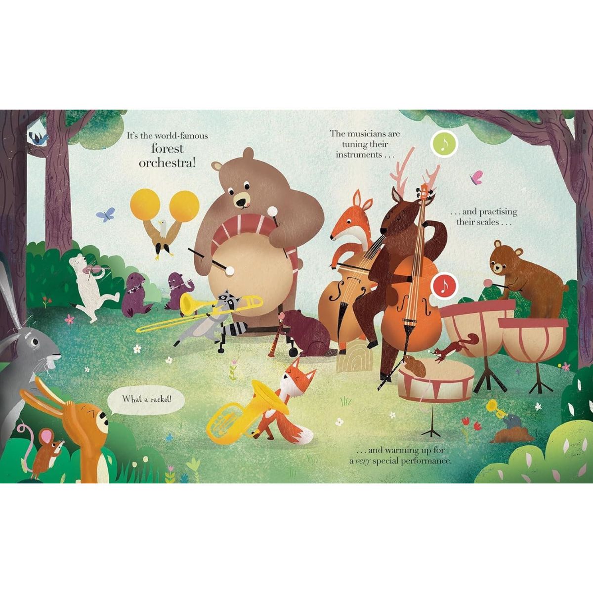 Join a wise hare and a curious little rabbit as they bound through the woods and stumble upon a secret gathering: the world-famous forest orchestra!. Watch in wonder as magnificent woodland creatures tune their instruments for a very special performance. From a big bear on the bass drum to a fox on the cello and a raccoon on the trombone, this is a concert like no other.