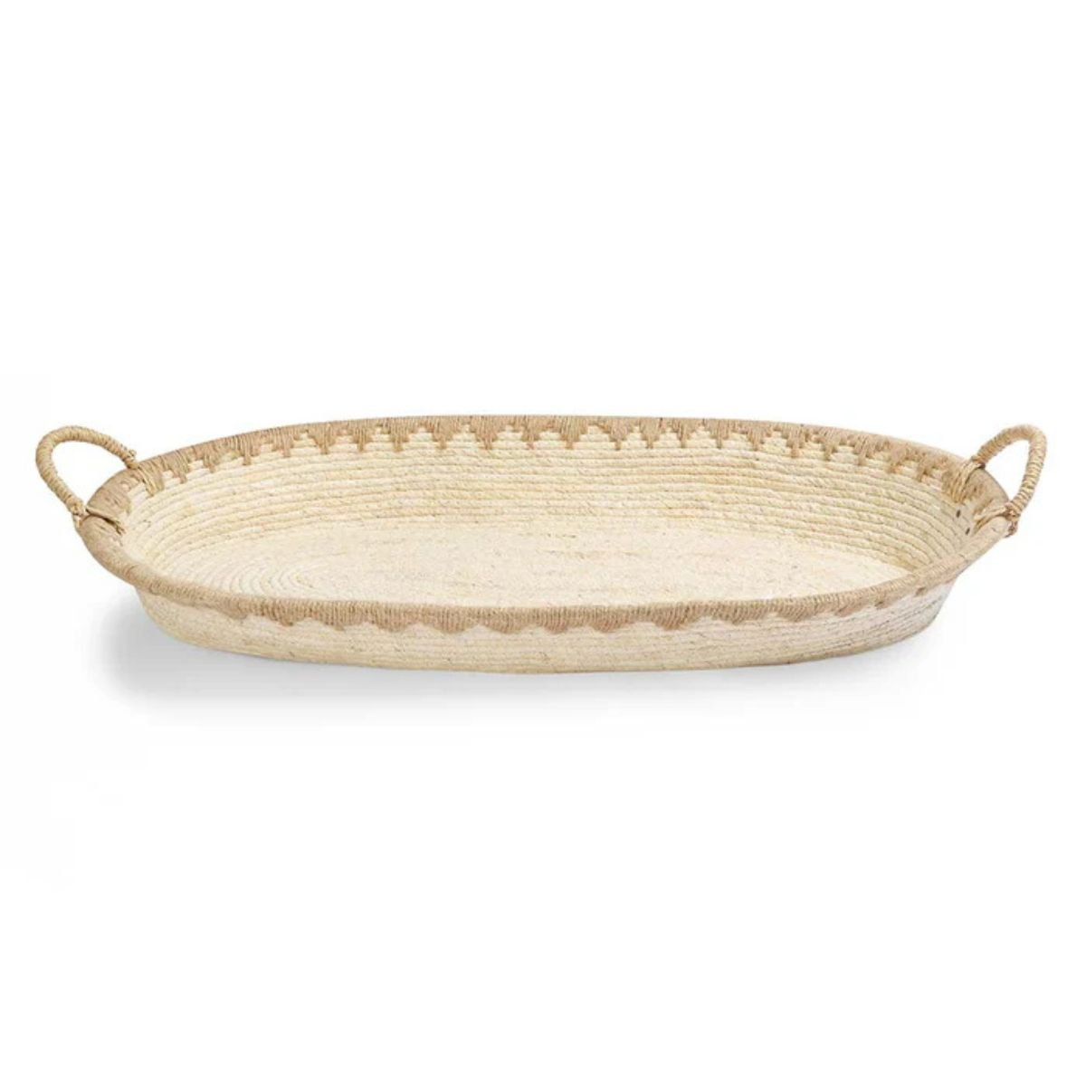 Artisanal Charm: Crafted from natural maize with a delicate scalloped jute trim, this basket offers a rustic yet refined aesthetic that complements any decor theme.