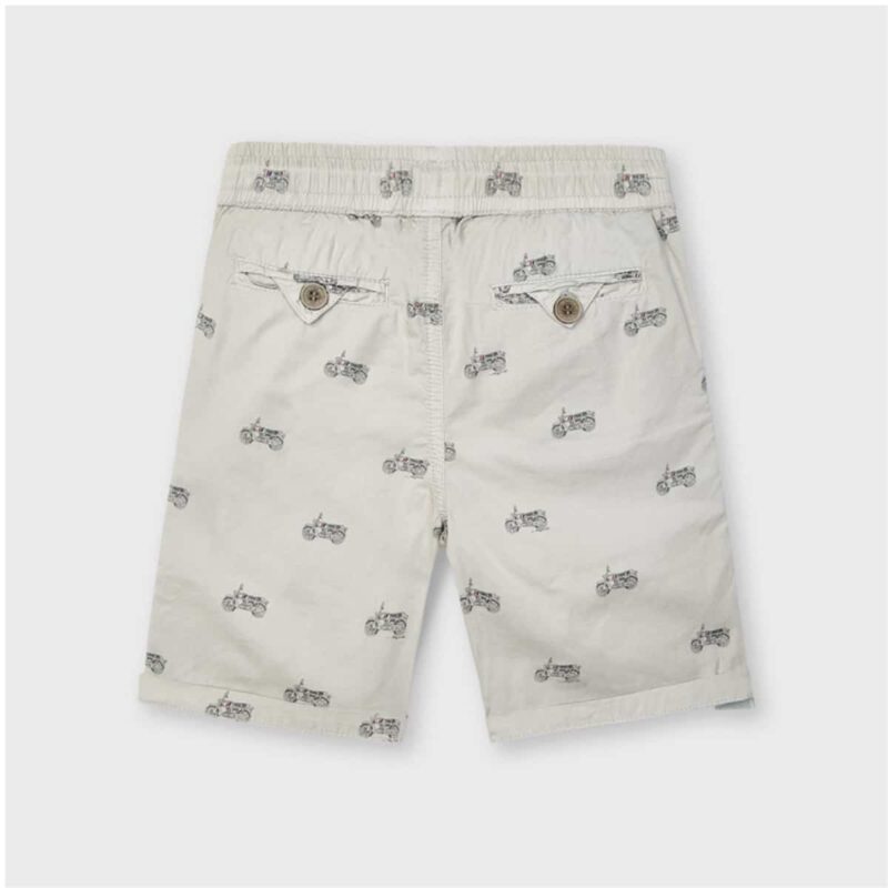 Bermuda shorts for boy. Elasticated waistband with adjustable drawstring. Made from 100% cotton fabric. Functional front pockets. Patterned design. This item has a special tinting which means that its finish may not be uniform or that the colour may vary with the washings.