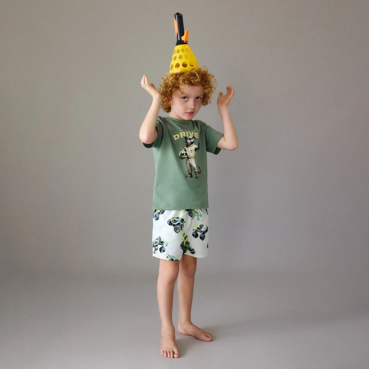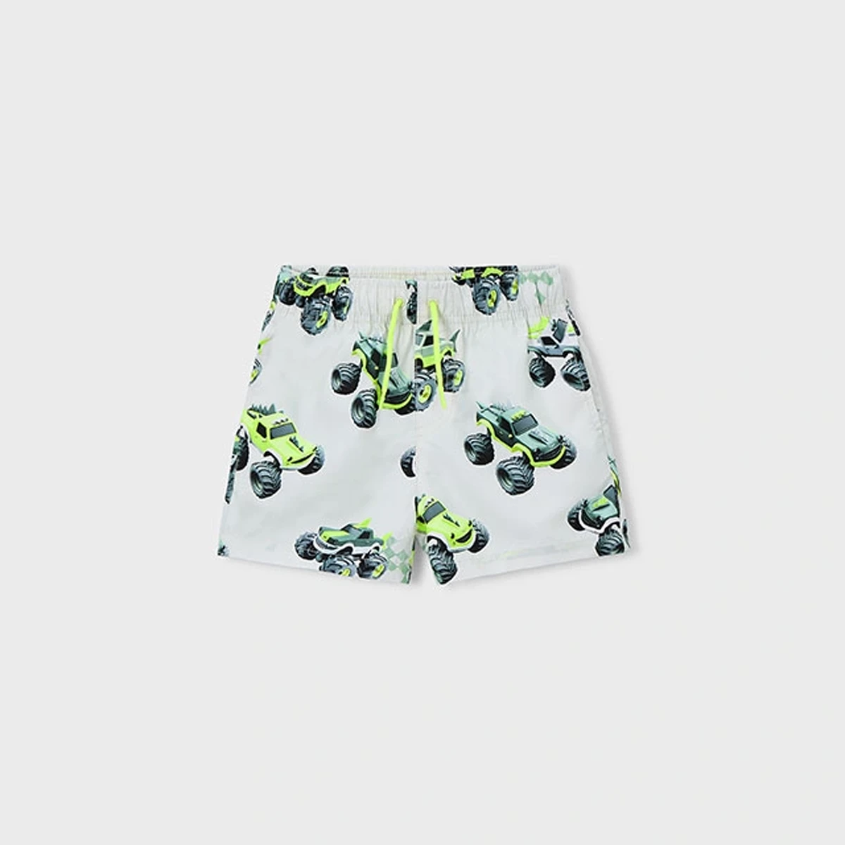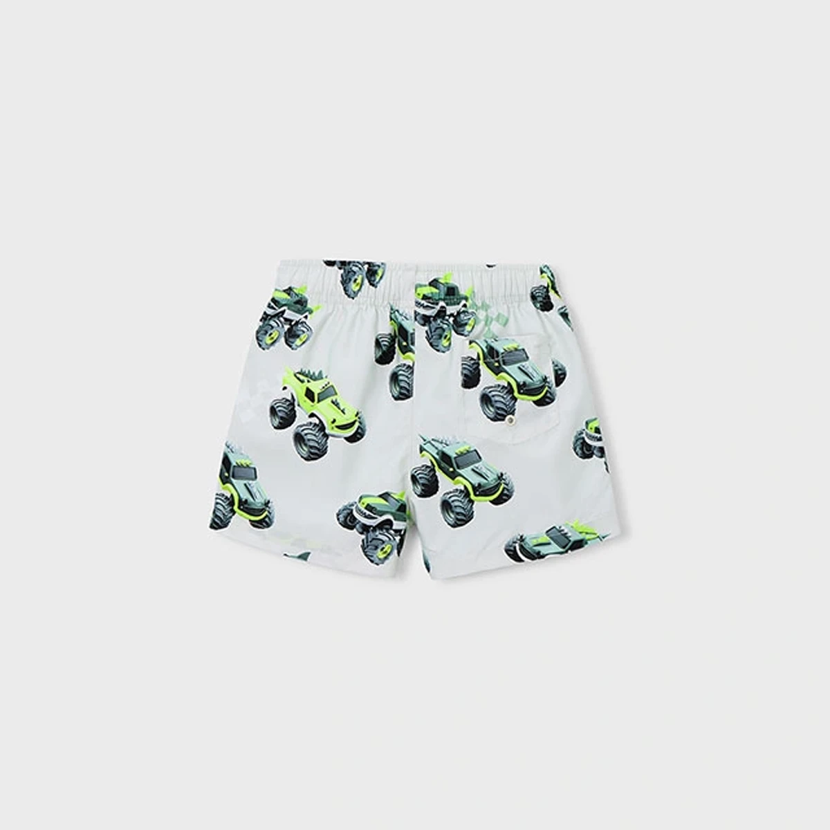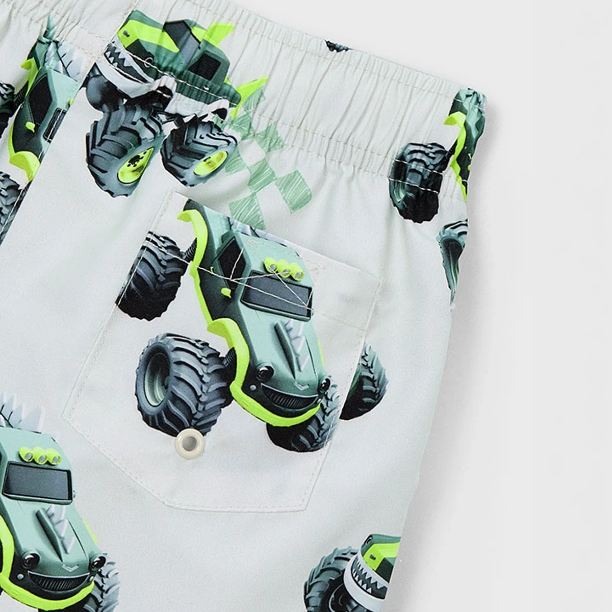Gear up for a high-speed summer! These Mayoral swim shorts turn every trip to the pool or beach into an epic rally. Designed for the little explorer who loves big splashes and even bigger wheels, these trunks combine a playful “monster truck” aesthetic with high-performance swim fabric.