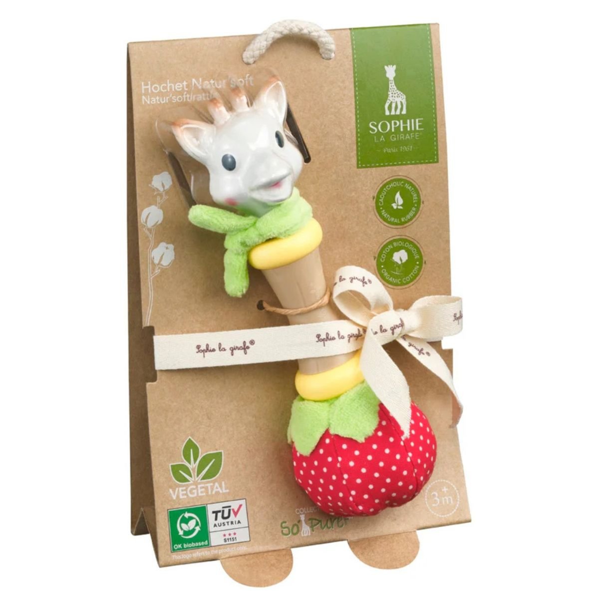 Introduce your little dreamer to a world of natural wonders with the Sophie la girafe® Natur’soft Rattle. This innovative rattle is the first of its kind, beautifully blending three natural materials to create a safe, sensory experience for your baby.