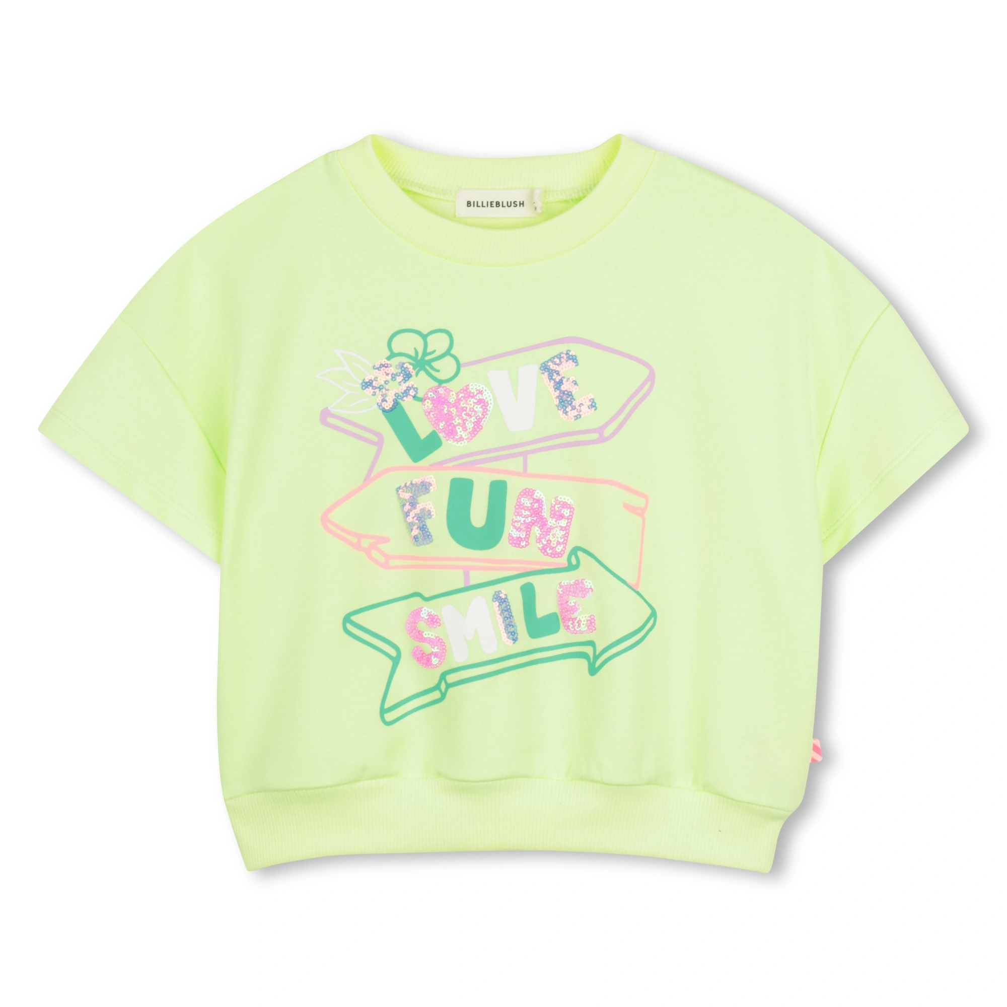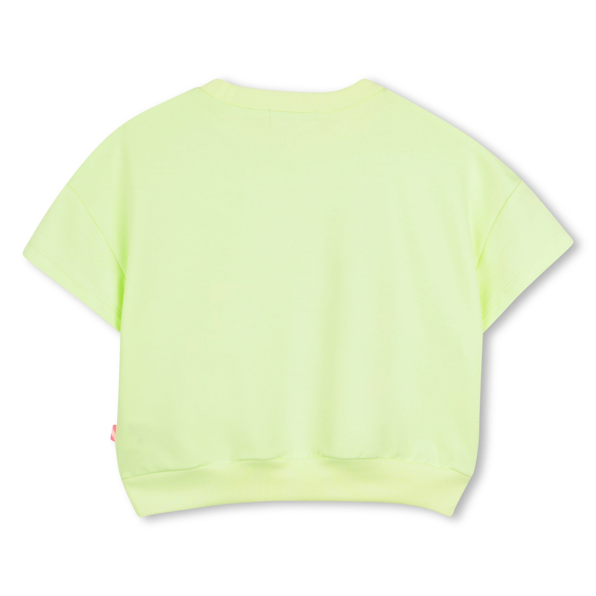 Brighten up her day with this fun and vibrant neon green top by Billieblush. Designed with a playful spirit, this short-sleeved sweatshirt combines the casual comfort of soft jersey with a “shining” message of positivity that is perfect for any adventure.