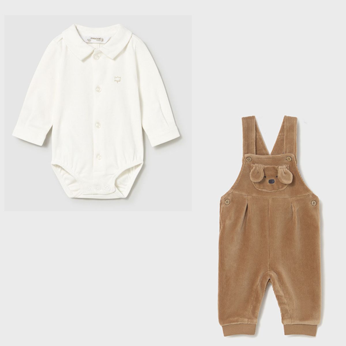 Newborn White Shirt Bodysuit & Bear Corduroy Dungaree Set