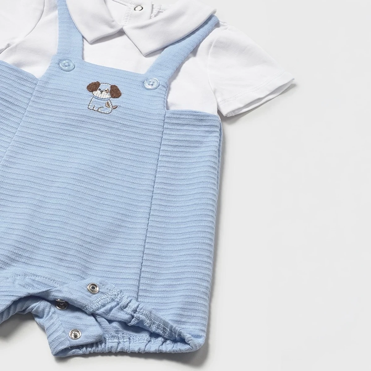 Adorable Puppy Detail: Features a tiny, beautifully embroidered puppy motif on the chest, adding a sweet and playful nursery touch to the outfit.